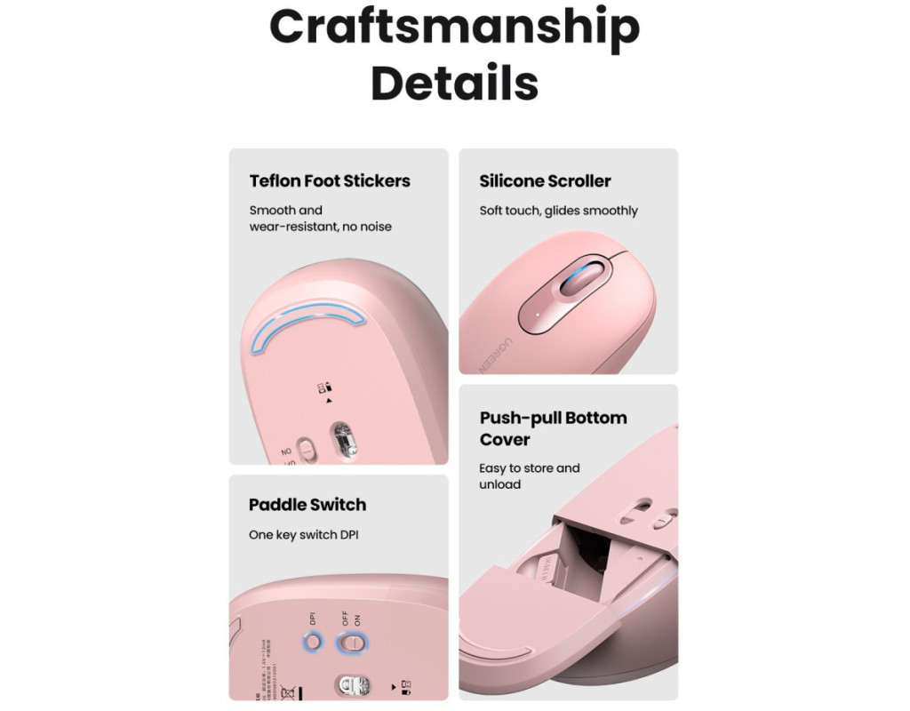 | Мишка UGREEN MU105 Wireless Pink (90686) – це стильний і сучасний аксесуар, створений для того, щоб додати яскравості та комфорту вашому робочому простору. Її вишуканий рожевий колір та інноваційний дизайн підкреслюють вашу індивідуальність, привертаючи увагу до кожної деталі. Ця мишка є ідеальним вибором для тих, хто цінує естетику та якість у поєднанні з практичністю. Однією з головних переваг UGREEN MU105 є її безшумність і портативність. Забудьте про плутанину з проводами – бездротове підключення 2.4 ГГц забезпечує надійний і стабільний зв’язок на відстані до 10 метрів, дозволяючи працювати вільно і зручно. Крім того, ергономічний дизайн цієї миші з округлими формами гарантує комфорт навіть при тривалій експлуатації, повторюючи природний контур долоні. UGREEN MU105 створена для універсального використання – вона підходить як для правшів, так і для лівшів. Це робить її винятковим вибором для всіх категорій користувачів, яким важливий комфорт без компромісів. Оптичний датчик дозволяє регулювати чутливість миші від 800 до 2400 DPI, забезпечуючи високу точність і продуктивність, що особливо цінно для завдань, які потребують зосередженості та швидкості. Ця мишка оснащена трьома кнопками, одна з яких має функцію вимкнення звуку. Це додає зручності в умовах спільної роботи чи в тих середовищах, де тихий режим є важливим критерієм. З ресурсом натискань до 3 мільйонів разів, ви можете бути впевнені у надійності та довговічності пристрою. Що стосується живлення, мишка працює від одного акумулятора типу AA, що робить її доступною і простою у використанні. Завдяки економічній витраті енергії, ви можете насолоджуватися тривалим користуванням без частої заміни батарей. Завершуючи огляд, UGREEN MU105 Wireless Pink (90686) – це не просто периферійний пристрій. Це поєднання стилю, функціональності і надійності, яке дарує вам комфорт і задоволення від щоденної роботи. Обираючи UGREEN, ви обираєте високу якість та технології, які відповідають вашим вимогам. |