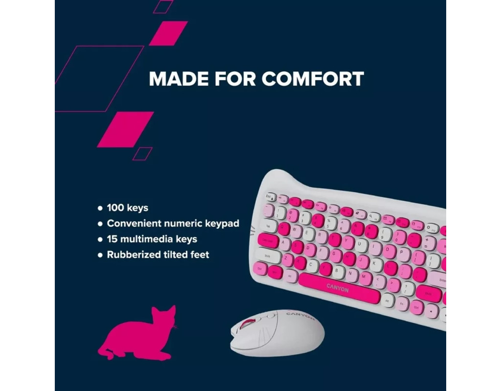 Комплект Canyon HSET-W6 Kitty Edition Wireless UA Pink (CNS-HSETW6PK)