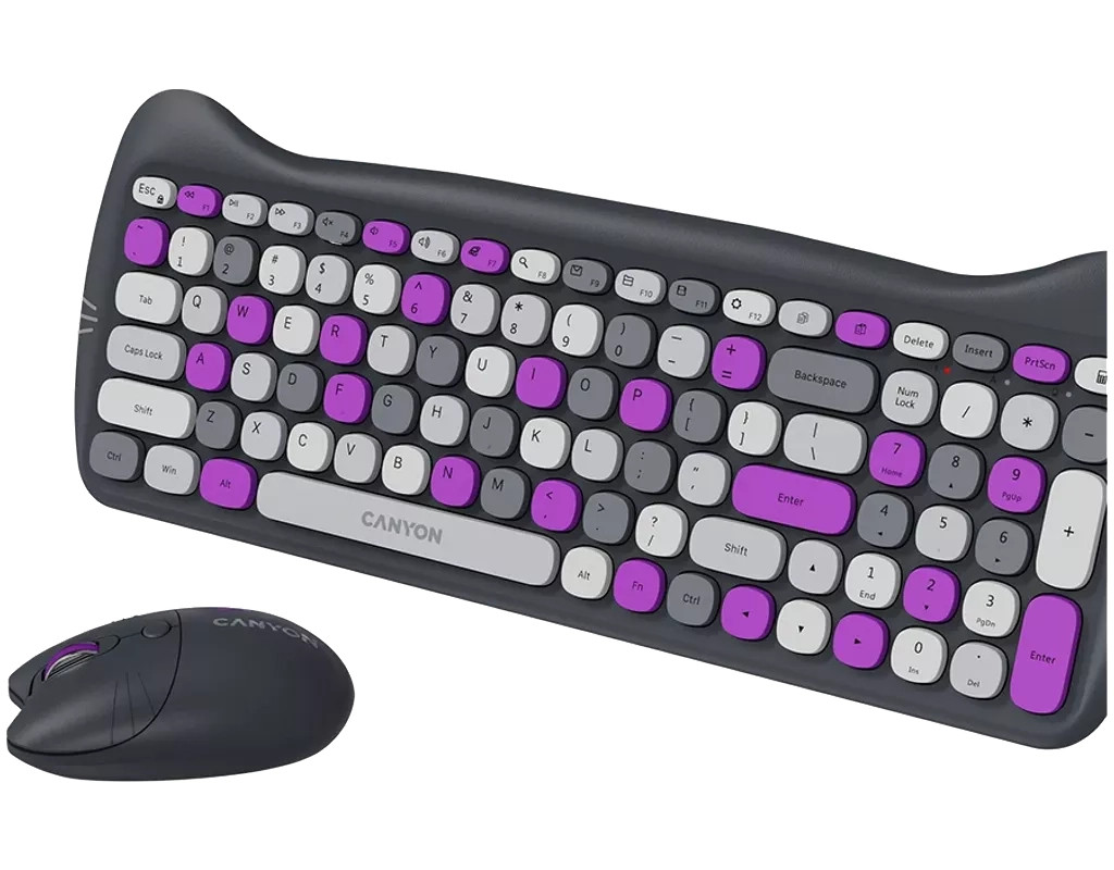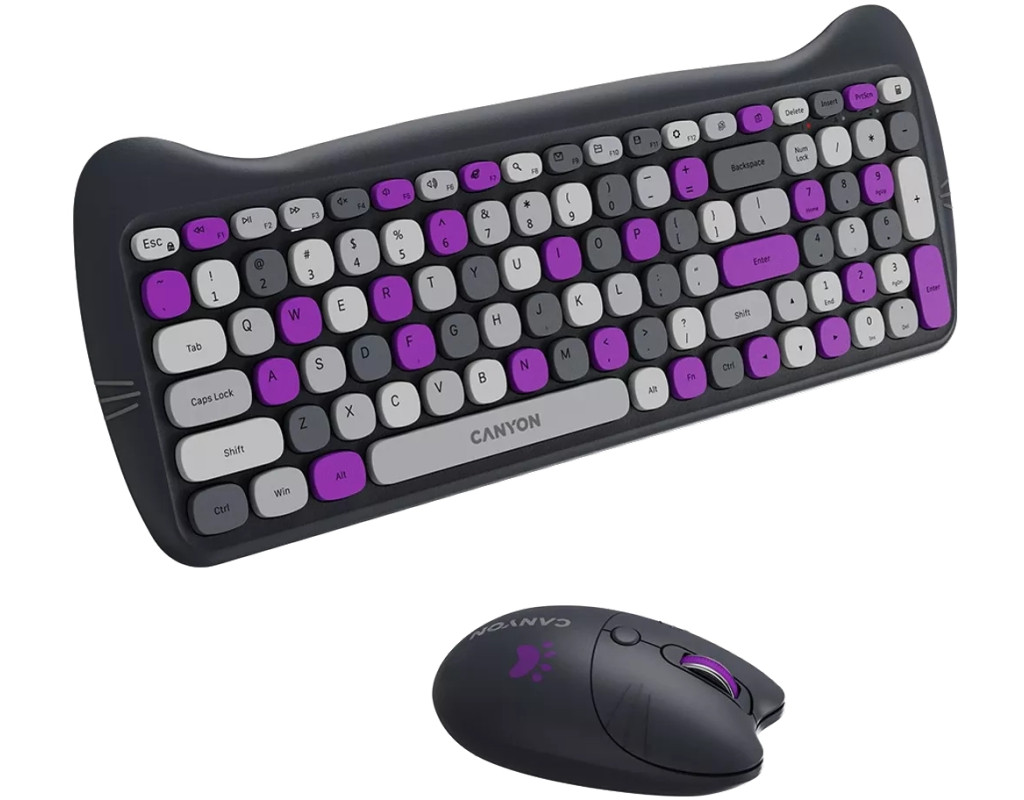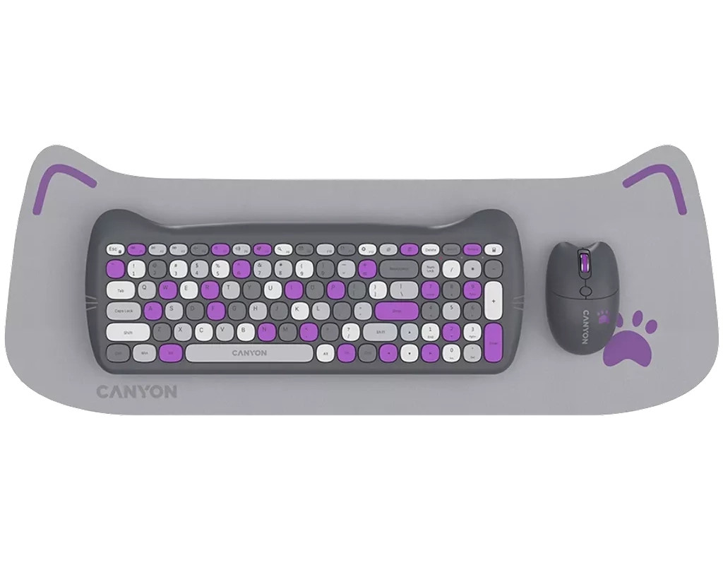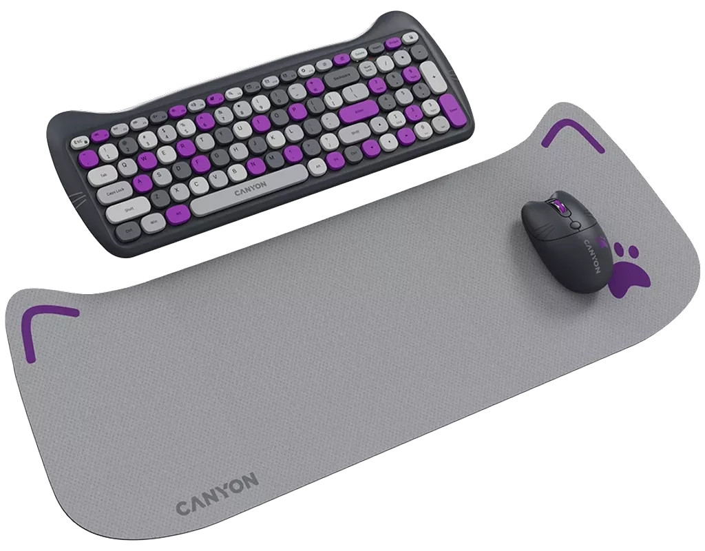 Елегантний дизайн та унікальний стиль Canyon Kitty Edition – це гармонійне поєднання функціональності та естетики. Витончена сіро-синя кольорова гама надає набору стильного вигляду, а деталізований дизайн з нотками грайливості робить його справжньою окрасою робочого простору. Комфортна та надійна клавіатура Клавіатура має повнорозмірну розкладку з 100 клавішами, включаючи 15 мультимедійних для швидкого доступу до основних функцій. Тихі ножичні перемикачі забезпечують плавне та комфортне натискання, що знижує рівень шуму при друці. Завдяки довговічним матеріалам і лазерному гравіюванню символів кожна клавіша зберігає чіткість навіть після тривалої експлуатації. Життєвий цикл клавіатури – до 10 мільйонів натискань, що гарантує її надійність і тривалий термін служби. Тиха та чутлива миша До набору входить бездротова миша, яка має чотири безшумні кнопки для максимальної зручності під час роботи. Регульована роздільна здатність дозволяє налаштувати чутливість під особисті уподобання, забезпечуючи точність рухів. Легкий корпус із м’яким на дотик покриттям робить користування приємним, а ресурс у 3 мільйони кліків гарантує тривалу службу. Безпровідна свобода та надійне з’єднання Набір працює на частоті 2.4 ГГц, що забезпечує стабільне з’єднання без затримок та обривів. Стандартні батарейки типу AAA та AA дозволяють довго насолоджуватися бездротовою роботою без необхідності частої заміни елементів живлення. Додаткові переваги До комплекту входить вельветовий захисний чохол, який додає витонченості та забезпечує додатковий рівень безпеки для пристроїв. Похилі ніжки клавіатури з прогумованою основою запобігають ковзанню, а матове покриття захищає від слідів пальців, зберігаючи акуратний вигляд. Canyon Kitty Edition – ідеальне поєднання стилю, зручності та продуктивності. Це вибір для тих, хто цінує естетику та комфорт у кожній деталі! |