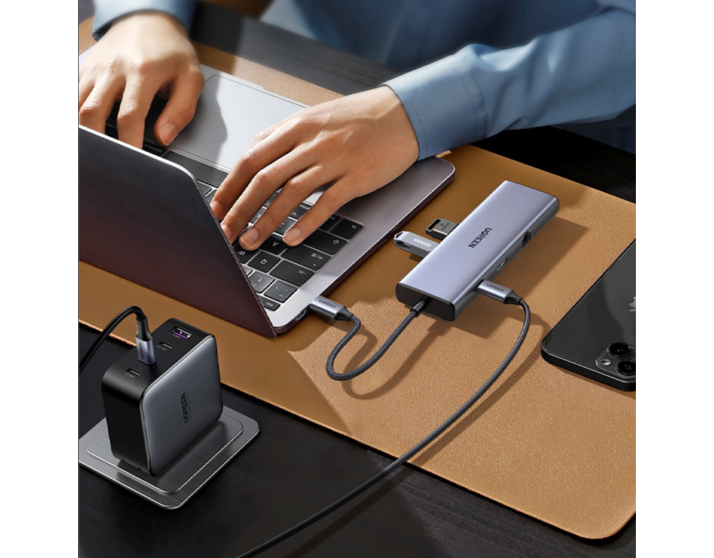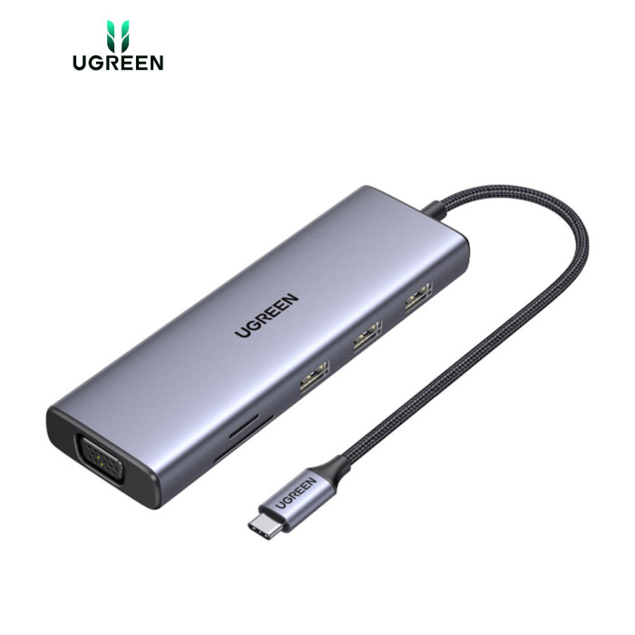 Хаб Ugreen 10 в 1 USB C забезпечує розширений подвійний монітор 4K HDMI і 1080P VGA, порт Gigabit Ethernet, порт зарядки USB C 100 Вт PD, 3 порти USB A 3.0 і пристрій читання карт SD TF. Усі порти багатопортового адаптера можна використовувати одночасно.