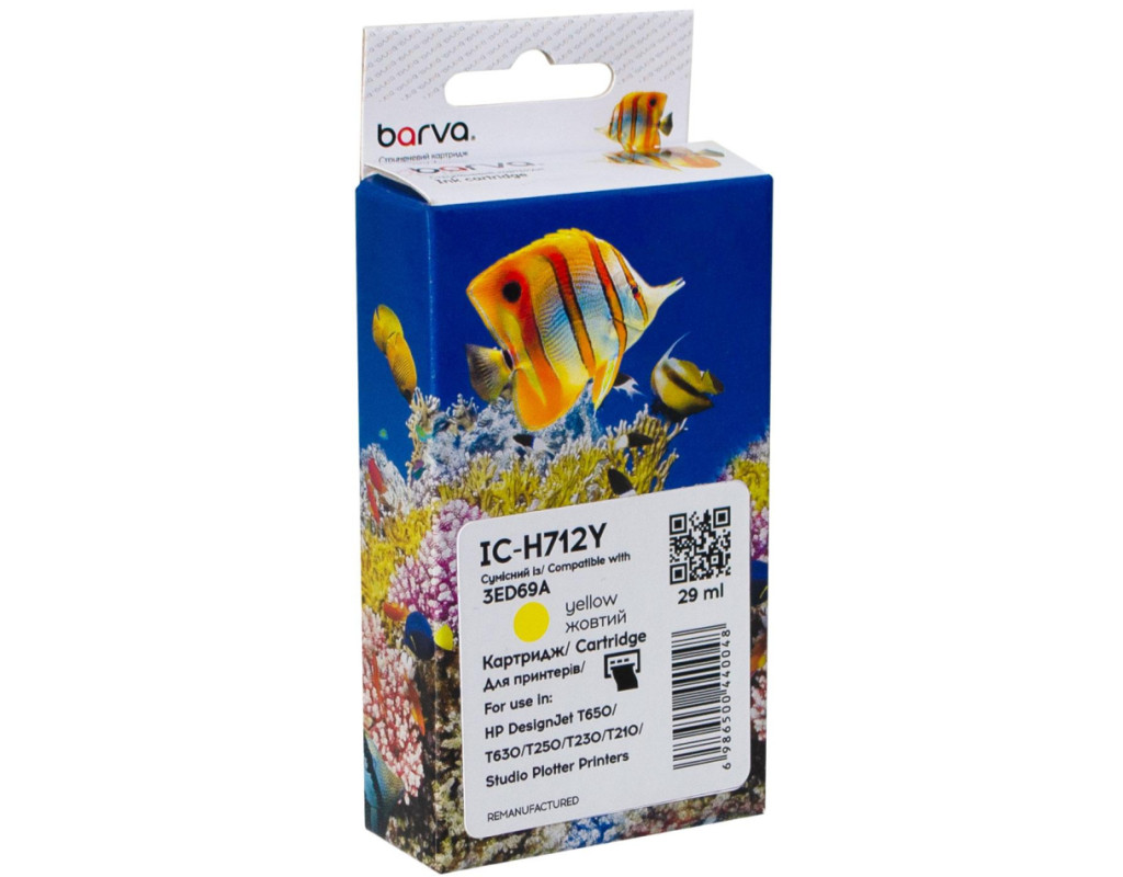 Картридж Barva HP 712 (3ED69A/3ED79A) 29 мл, Yellow (IC-H712Y)