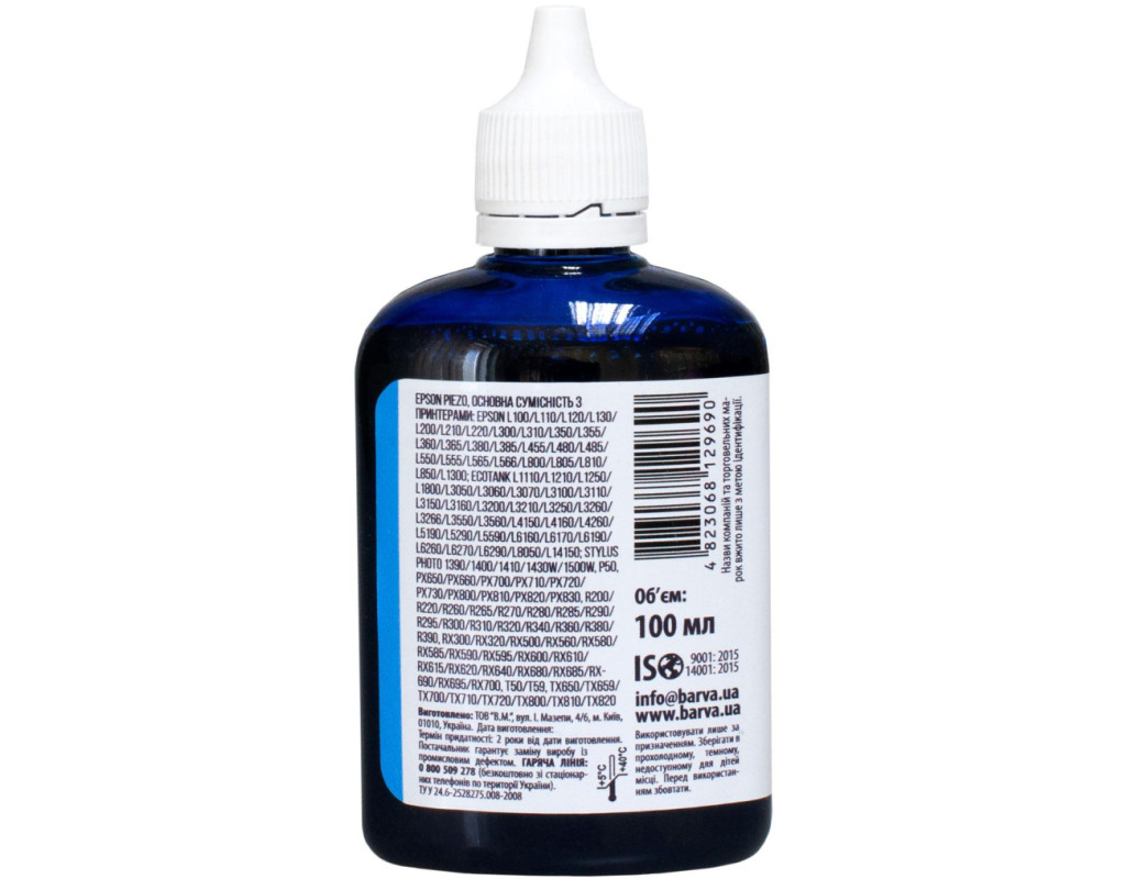 | Сублімаційні чорнила – спеціальний тип чорнил, що використовується для перенесення зображень на текстиль, метал, кераміку, пластик і т.д. Чорнило сумісне для настільних принтерів Epson 100 мл, сублімаційне, блакитне Barva (SUB-913) використовується для заправки настільних принтерів Epson. Чорнила SUB-913 Barva мають офіційну гарантію – АТ000953. При виборі чорнила Вам також необхідно звернути увагу на колір картриджа, який плануєте заправляти. Ці чорнила Barva мають колір – cyan (блакитний). Виробник гарантує безперебійну роботу чорнил протягом всього терміну використання, який складає – 2 роки. Тип чорнил SUB-913 Barva – Сублімаційні. Українська компанія ТОВ «В.М.» виготовляє чорнила під торговою маркою Barva вже багато років. На базі власної лабораторії відбувається як розробка нових формул, так і неперервний контроль якості продукції, що випускається. При виробництві чорнил виробник слідує стандартам ISO 9001:2015 та ISO 14001:2015. Для досягнення найкращого результату в передачі кольору та стійкості до світла ми рекомендуємо використовувати комбінацію – Спеціальний папір для сублімаційного друку Barva + чорнила Barva. Дана фарба для принтера Epson Barva має фасовку – 100 мл, що має наступні особливості: Чорнила для принтера Epson SUB-913 Barva 90 гр./100 мл розфасовані в спеціальні флакони для зручної заправки; Ретельно підібраний поліетиленовий флакон має зручну насадку-носик, яка дозволяє легко заправити картриджі чи резервуари принтера без шприца; Невеликий об’єм чорнил ідеально підходить для користувачів, які друкують небагато; Чистота при заправці завдяки зручному флакону; Заправка в резервуар принтера: Зніміть кришку з флакону, відкрийте заглушки на резервуари з чорнилами на пристрої; Переконайтеся, що немає помилки з кольором чорнил; За допомогою носика на флаконі перелийте чорнила в ємності пристрою. Чорнила SUB-913 Barva, поради щодо використання: Підготуйте майбутній малюнок для переносу у дзеркальному зображенні. Надрукуйте тестовий аркуш для перевірки, чи все правильно зроблено. Перенесіть підготовлене зображення на необхідну поверхню за допомогою термопресу. Якщо плануєте переносити зображення на текстиль, обирайте тканину із вмістом синтетики не менше 50%. Ви можете купити Чорнило сумісне для настільних принтерів Epson 100 мл, сублімаційне, блакитне Barva (SUB-913) в нашому інтернет-магазині з доставкою по Києву та всій Україні. |