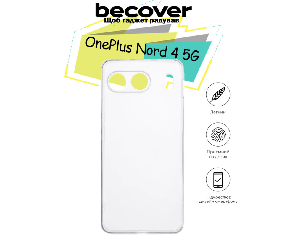 сумісність з моделями - OnePlus Nord 4 5G, Тип чохла для телефону - накладка, Призначення - модельний, Матеріал - силікон, Колір - прозорий