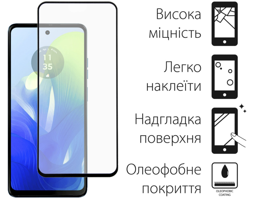 Призначення - для телефону, Вид покриття - глянсове, Сумісність з моделями - Motorola G04, Кількість в упаковці - 1 шт