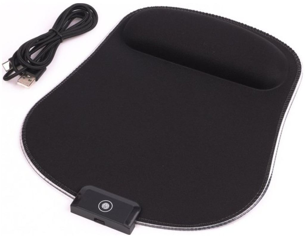 гума, ігрові, з подушкою під зап'ястя, з підсвічуванням, Колір - чорний