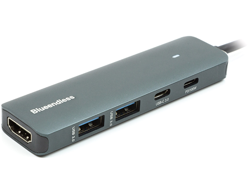 Перехідник USB Type-C на 2 порти USB 3.0, Type-C 3.1 (PD+передача даних), HDMI. Особливості: