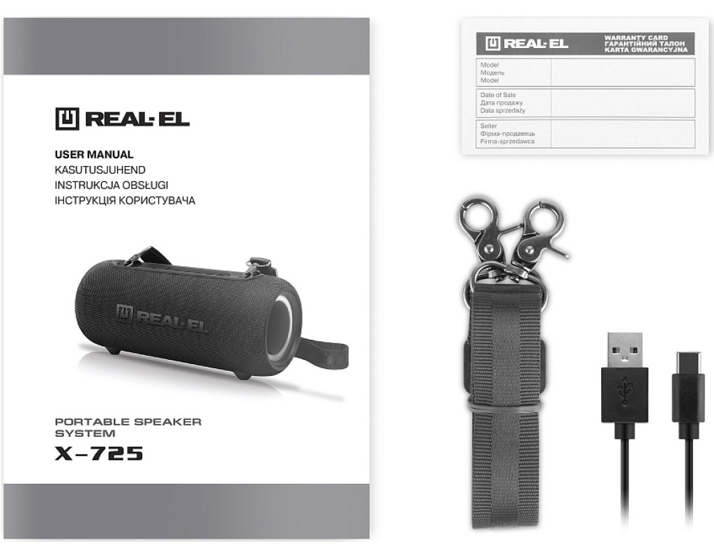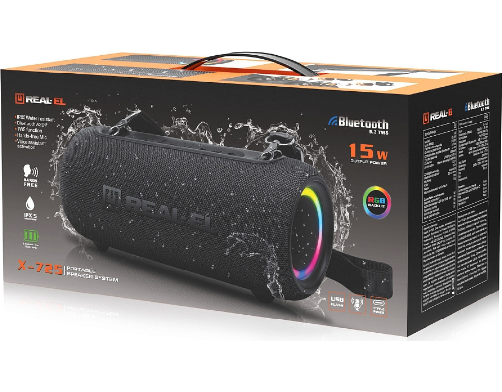 | Акустична система REAL-EL X-725 (EL121600028) — це втілення сучасної технології в стильному дизайні, що гарантує неперевершений звуковий досвід. Ця портативна колонка є ідеальним вибором для поціновувачів якості та мобільності, адже вона дарує вам бездротову музичну насолоду та багато унікальних функцій. Основою звукової системи REAL-EL X-725 є два потужні динаміки діаметром 70 мм, що забезпечують якісне відтворення звуку з глибокими басами та чистими високими частотами. Вона розвиває загальну потужність 15 Вт, чим легко наповнює простір об'ємним звуком, що робить її ідеальним вибором як для домашніх умов, так і для активного відпочинку на природі. Завдяки Bluetooth 5.3, колонка забезпечує бездротову свободу підключення, підтримуючи швидке та стабільне з'єднання зі смартфоном чи будь-яким іншим пристроєм. Для зручності вона оснащена AUX і USB-C роз'ємами, що дозволяють обирати різні способи відтворення музики. Інноваційна функція TWS («True Wireless Stereo») дає можливість об'єднання двох колонок в одну систему, подвоюючи потужність звуку для ще більшого ефекту. Відзначимо водонепроникний корпус REAL-EL X-725 з рівнем захисту IPX5, що робить цю колонку надійним супутником навіть у вологих умовах. Це дає вам можливість використовувати її на кухні, терасі або в ванній кімнаті, не турбуючись про бризки води. Поєднання пластику та гуми у матеріалах корпусу забезпечує міцність і комфорт у використанні. Вбудований акумулятор із ємністю 3600 мА·год гарантує тривалий час автономної роботи, а заряджання через USB Type-C порт робить процес швидким та легким. З вагою всього 1.3 кг, колонка є дуже мобільною, а завдяки зручному ремінцю для носіння, можна брати її з собою куди завгодно без зайвих труднощів. Ще однією перевагою є RGB підсвічування, яке змінює настрій звукового супроводу та надає чудовий візуальний ефект вашим музичним вечорам. Завдяки вбудованому мікрофону, REAL-EL X-725 стає чудовим пристроєм для гучного зв'язку, дозволяючи вам насолоджуватися комфортним спілкуванням у будь-якій ситуації. REAL-EL X-725 — це не лише потужний звук, а й стильний аксесуар, що урізноманітнює ваше життя яскравими емоціями. Оберіть цю акустичну систему для підтримки свого ритму життя і зробіть її незамінним супутником під час кожного святкування чи відпочинку. |