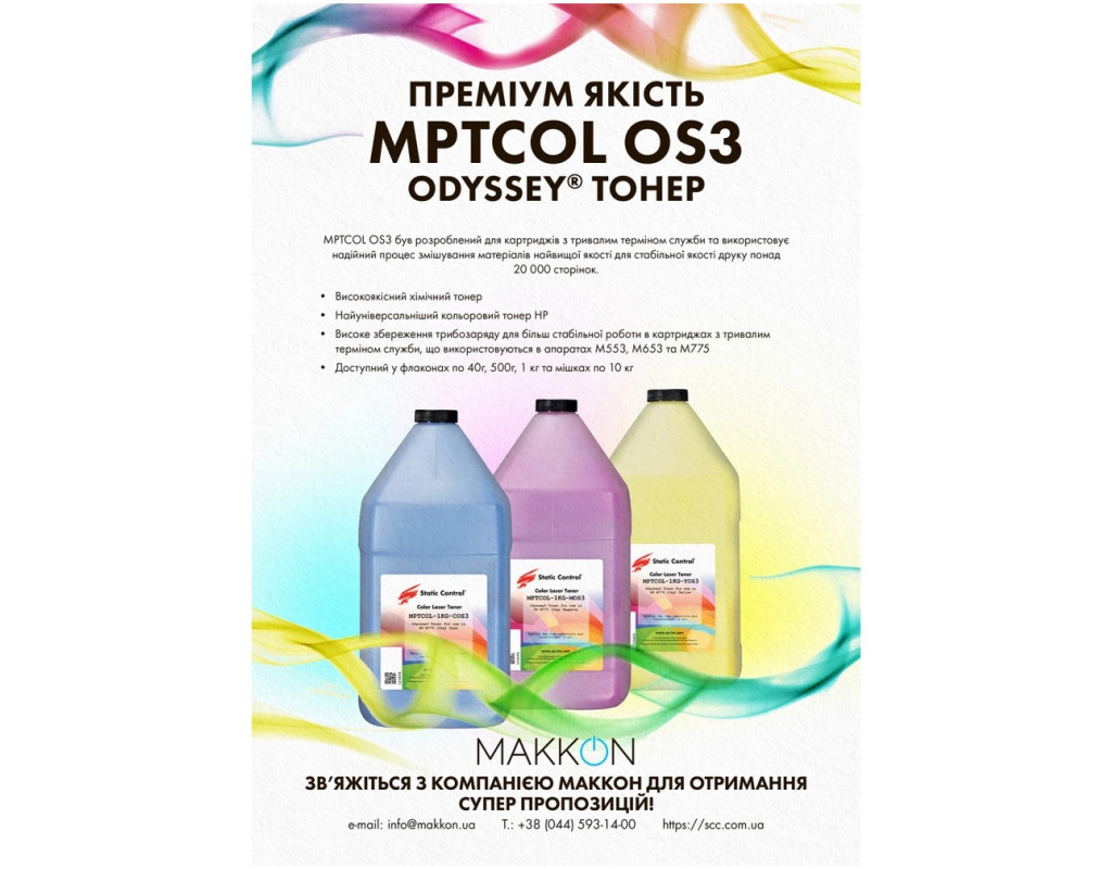 MPTCOL OS3 — преміальне рішення для вашого картриджа. Цей тонер був розроблений для картриджів з тривалим терміном служби та використовує надійний процес змішування матеріалів найвищої якості для стабільної якості друку понад 20 000 сторінок. Кожна партія тонера проходить суворий контроль якості. Основні переваги: · Високоякісний хімічний тонер; · Оптимальна ефективність: ідеальний баланс між ресурсом картриджа та вартістю друку сторінки; · Найуніверсальніший кольоровий тонер HP, сумісний з новими популярними моделями; · Високе збереження трибозаряду для більш стабільної роботи в картриджах з тривалим терміном служби, що використовуються в апаратах M553, M653 та M775; · Вихідний контроль якості кожної партії тонера. |