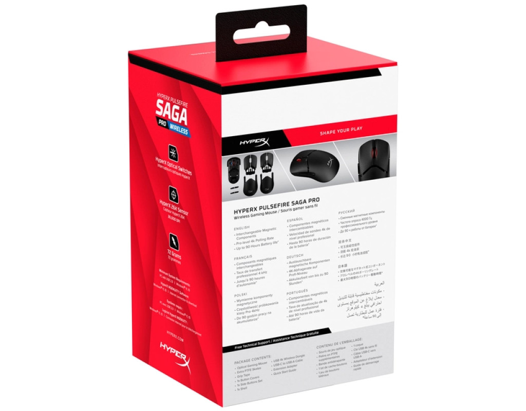 | HyperX Pulsefire Saga Pro Wireless/Bluetooth Black (A2PB2AA) — це вибір для геймерів, які прагнуть бездоганної якості, найсучаснішої технології та зручності у використанні. Задоволення потреб навіть найвибагливіших користувачів забезпечується ретельно продуманим функціоналом та ефективністю цього пристрою. Ергономічний дизайн HyperX Pulsefire Saga Pro створений для максимального комфорту та продуктивності. Її легка вага, всього 72 грами, забезпечує маневреність без компромісів на комфорт, дозволяючи зберігати швидкість і точність в ігрових сесіях. Завдяки взаємозамінним компонентам і 16 можливим комбінаціям для різних стилів хвата, ви можете налаштувати мишку під себе, забезпечуючи зручність у довготривалих іграх. Технічні характеристики Pulsefire Saga Pro заслуговують на окрему увагу. Оптичний сенсор з роздільною здатністю до 26,000 DPI надає найвищу точність управління, необхідну для влучного прицілювання в найінтенсивніших моментах гри. Варіативність у підключенні через Bluetooth або USB-адаптер 2,4 ГГц гарантує стабільну і надійну роботу, дозволяючи легко переключатися між пристроями. На додаток, Pulsefire Saga Pro оснащена програмованими кнопками, що дозволяють налаштовувати дії залежно від ваших потреб, роблячи мишку ідеальним інструментом для персоналізації управління. Долговічний акумулятор здатен працювати до 90 годин без підзарядки у режимі постійного навантаження, що дозволяє не відволікатися на регулярне підключення до мережі. Програмне забезпечення HyperX NGENUITY відкриває безліч можливостей для налаштування: від налаштування RGB-підсвічування до зміни частоти опитування, та перевірки рівня заряду акумулятора. Це забезпечує той рівень контролю, що потрібен професійним гравцям. HyperX Pulsefire Saga Pro показує себе не лише як мишка, а як невід'ємна частина ігрового процесу. Вона бездоганно підходить для геймерських ноутбуків і готова супроводжувати вас у всіх баталіях, стаючи частиною вашого успіху на віртуальних полях бою, зокрема завдяки своїй сумісності з ігровими ноутбуками OMEN. Виберіть HyperX Pulsefire Saga Pro і отримайте перевагу завдяки високій точності і неймовірній зручності. |