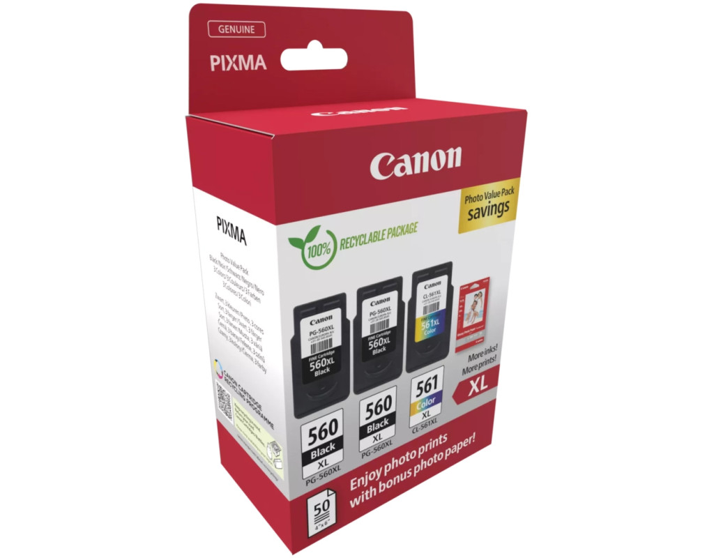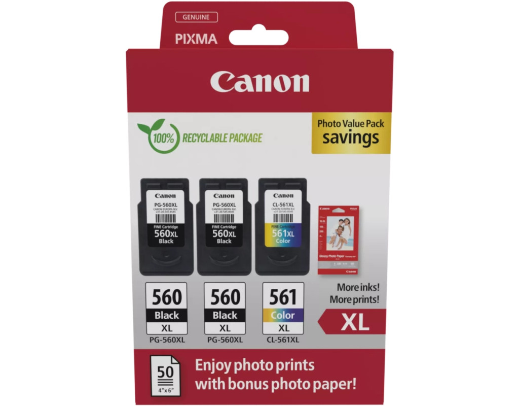 Картридж Canon PG-560/CL-561 XL 2xBK+Color, + Photo Paper, Value Pack (3712C012)