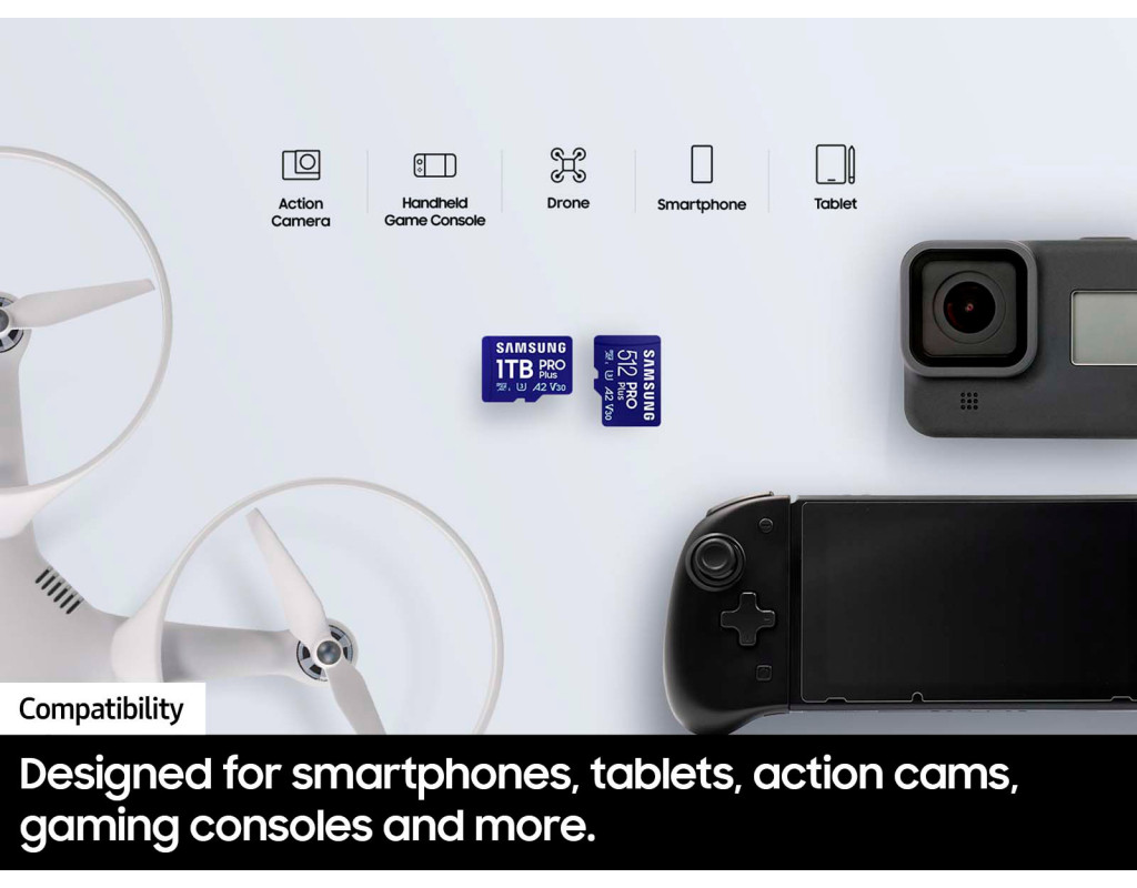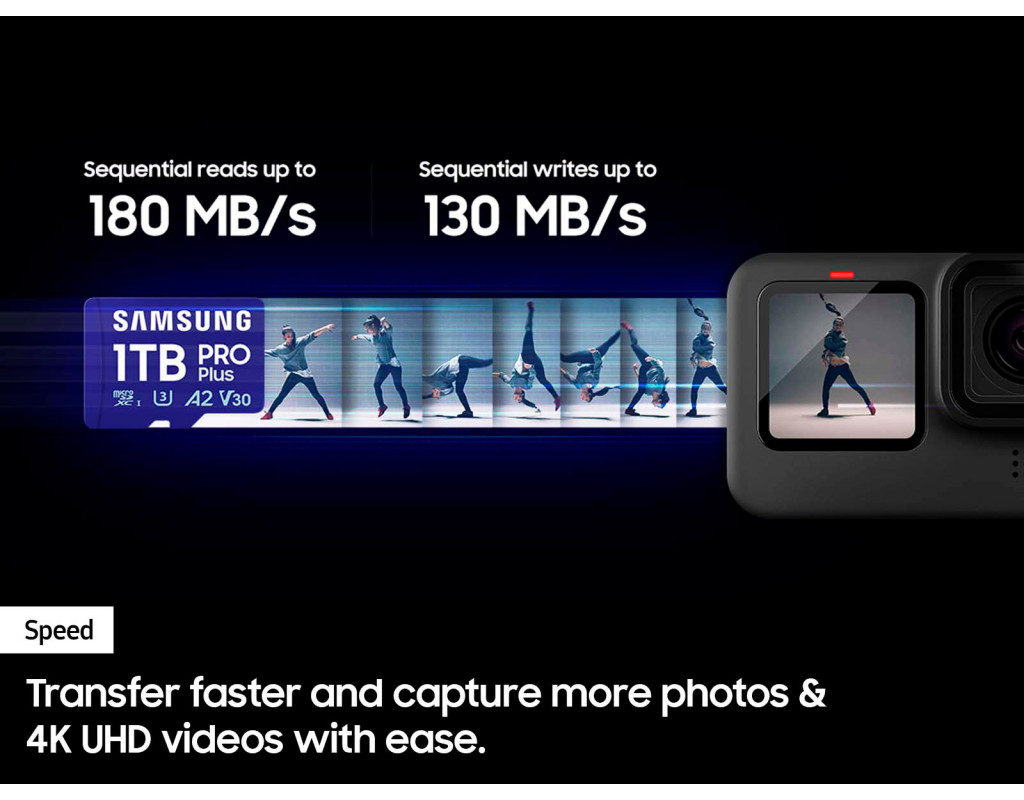 | Карта пам'яті Samsung 256GB microSDXC Pro Plus (MB-MD256SB/WW) є втіленням високих технологій для тих, хто цінує якість та швидкість зберігання даних. Цей носій з обсягом 256 ГБ відкриває безмежний простір для ваших цифрових активностей, будь то зйомка 4K відео або мобільні ігри. Завдяки швидкості читання до 180 МБ/с та запису до 130 МБ/с, ви зможете одразу насолоджуватися результатами своєї творчості без затримок та втрат якості. Карта відповідає стандарту UHS-I (U3) та рейтингу V30, що забезпечує надзвичайно плавну роботу під час запису та відтворення. Завдяки перехіднику USB ви отримаєте зручний доступ до своїх файлів будь-де і будь-коли, підкреслюючи комфорт використання на різних пристроях. Samsung PRO Plus забезпечує шестиступеневий захист: від води, температури, рентгенівських променів, магнітів, ударів і зношування, охороняючи ваші спогади. Насолоджуйтесь впевненістю разом із 10-річною обмеженою гарантією. Виберіть світового лідера у виробництві карт пам'яті, який із 2003 року підтримує стандарти якості, завдяки самостійному виробництву всіх компонентів. З Samsung кожна мить стає цінною. |