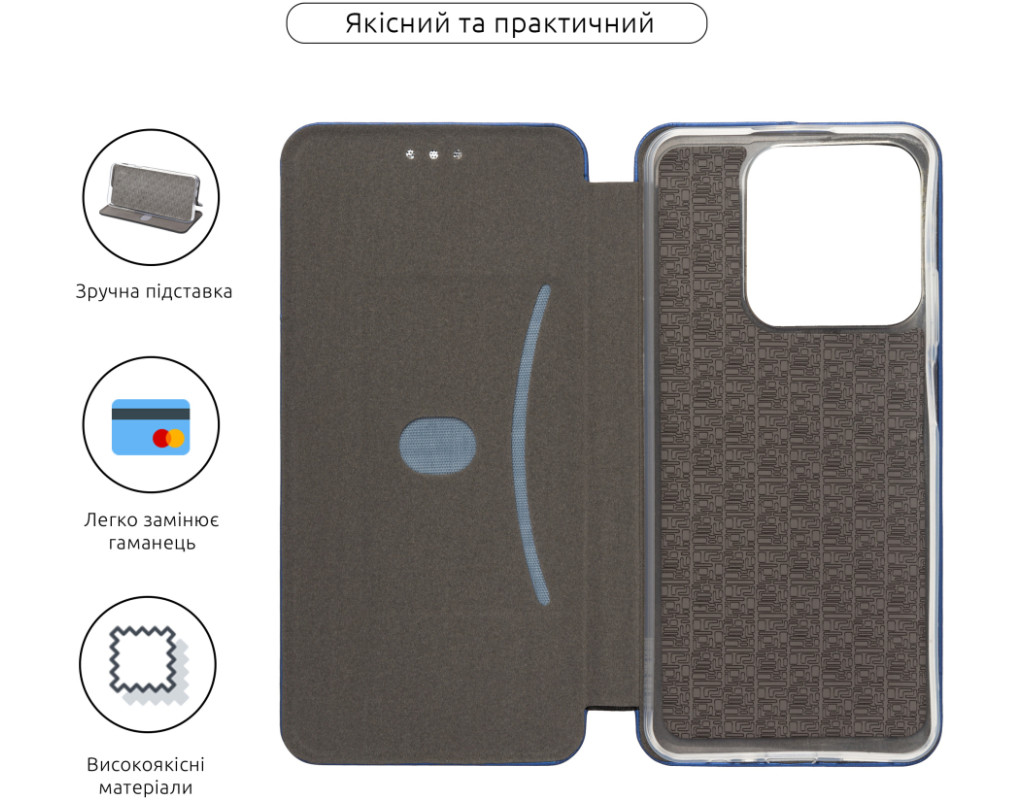 сумісність з моделями - Realme Note 60, Realme Note 60x, Realme C61, Realme C63 4G, Тип чохла для телефону - книжка, Призначення - модельний, Матеріал - поліуретан, Колір - синій