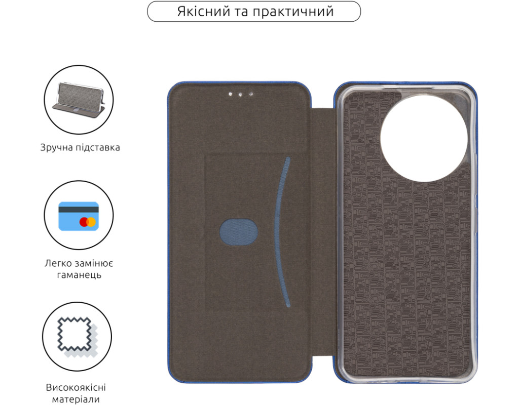 сумісність з моделями - Tecno Spark 30 Pro, Тип чохла для телефону - книжка, Призначення - модельний, Матеріал - поліуретан, Колір - синій