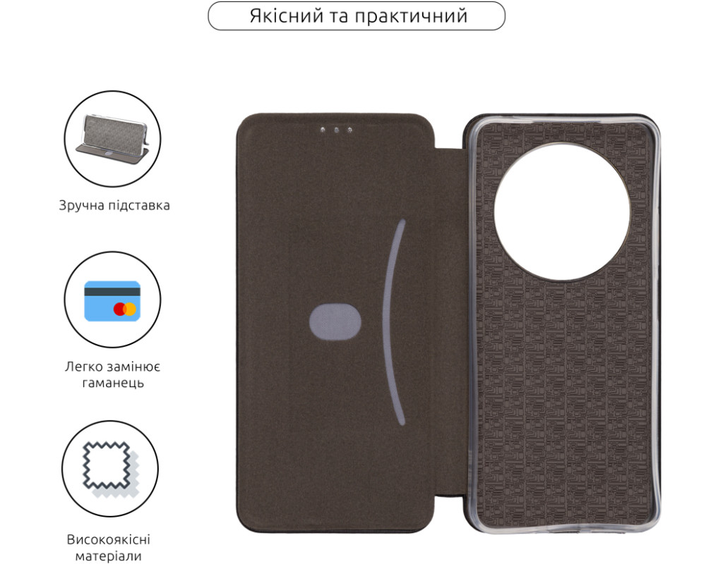 сумісність з моделями - Xiaomi Poco M7 5G, Тип чохла для телефону - книжка, Призначення - модельний, Матеріал - поліуретан, Колір - чорний