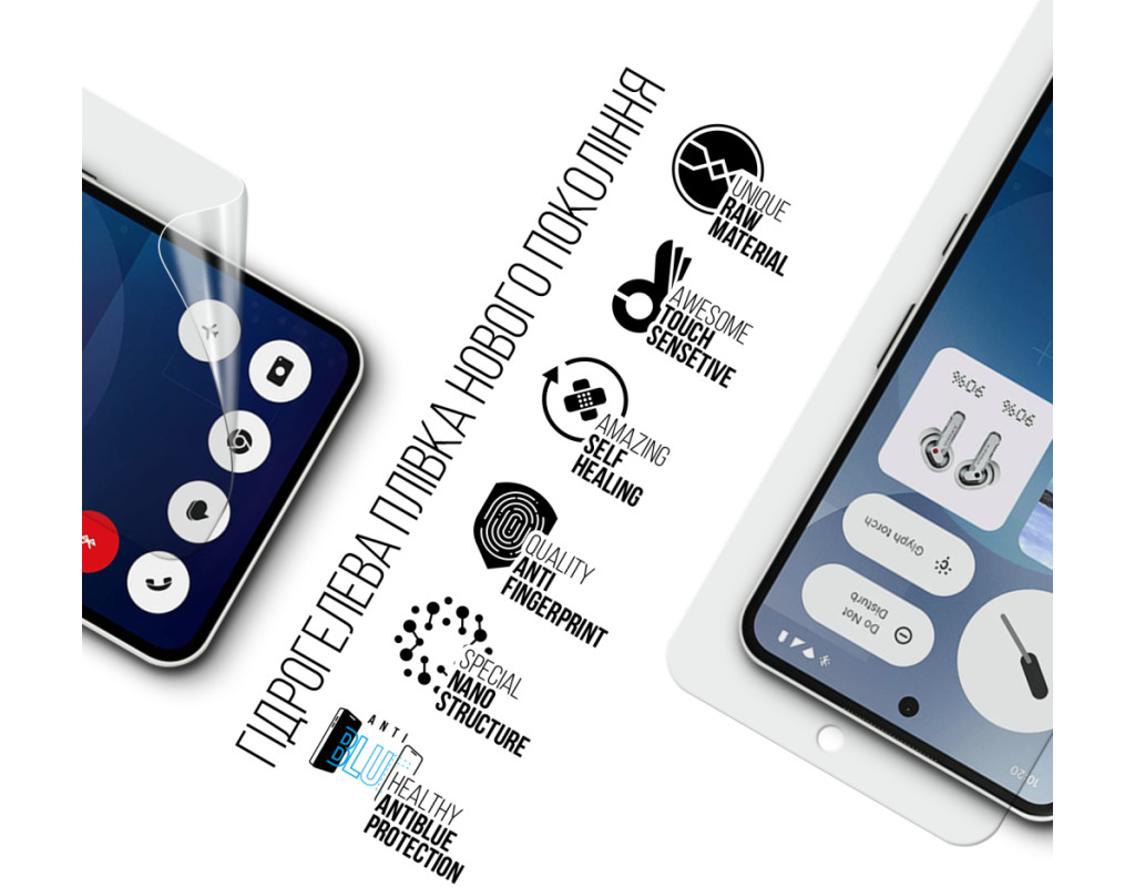 Призначення - для телефону, Вид покриття - глянсове, гідрогелева, Сумісність з моделями - Nothing Phone (3a), Кількість в упаковці - 1 шт