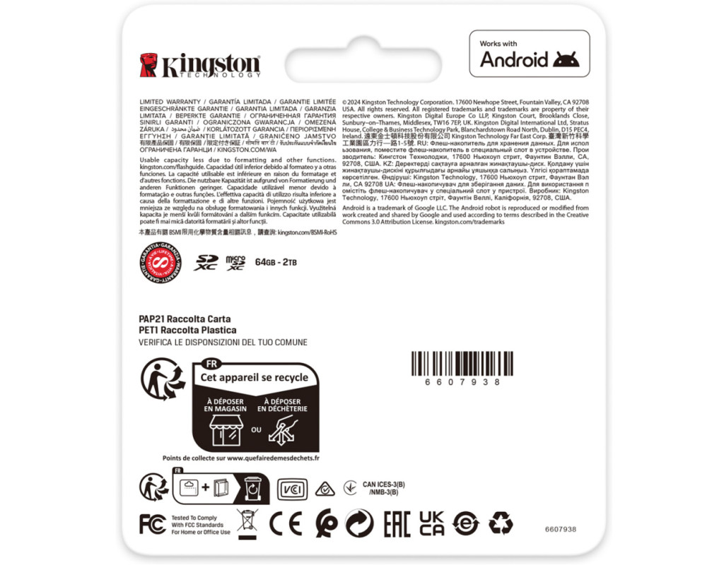 | Карта пам'яті Kingston 64GB microSDXC Canvas Go Plus G4 (SDCG4/64GBSP) – це бездоганний вибір для тих, хто прагне поєднання високої продуктивності та швидкості. Зі значним об'ємом в 64 ГБ, вона забезпечує вдосталь простору для зберігання ваших фото, відео та інших медіафайлів. Ця карта володіє вражаючою швидкістю читання до 200 МБ/с і запису до 160 МБ/с, завдяки чому є ідеальним рішенням для зйомки відео у форматі 4K Ultra-HD. Високий клас швидкості UHS-I (U3) гарантує швидкий доступ до даних саме тоді, коли це потрібно найбільше. Переваги карти також включають її чудову сумісність з екшн-камерами, дронами, а також пристроями на базі Android™, що робить її універсальним вибором для творчих людей. Для мобільних геймерів клас A2 забезпечує миттєве завантаження програм і плавний геймплей. Бонусом є наявність SD-адаптера, який розширює можливості використання карти у будь-якому пристрої, що підтримує SD-карти, роблячи її незамінним супутником для тих, хто цінує надійність і універсальність. |