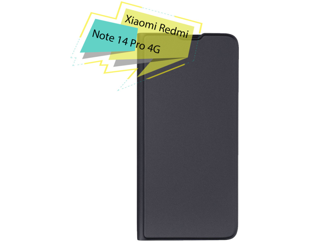 сумісність з моделями - Xiaomi Redmi Note 14 Pro 4G, Тип чохла для телефону - книжка, Призначення - модельний, Матеріал - поліуретан, Колір - чорний