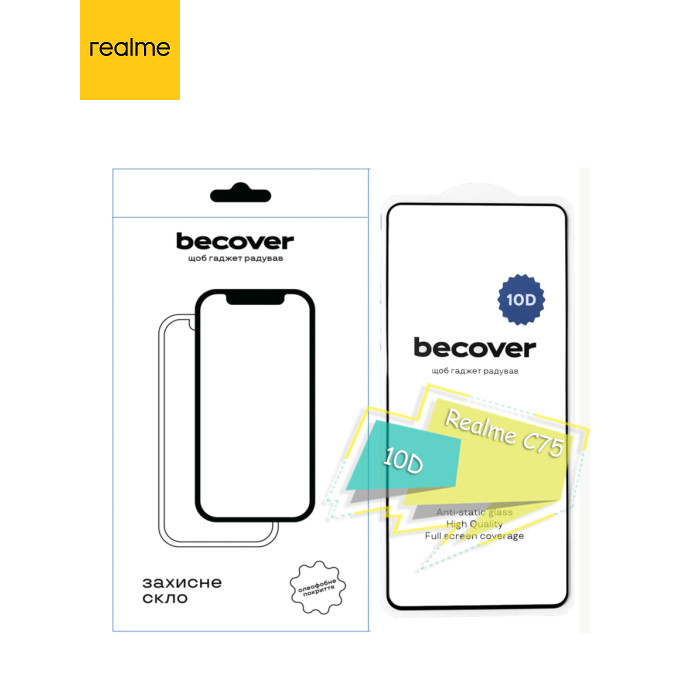 Призначення - для телефону, Вид покриття - глянсове, Сумісність з моделями - Realme C75, Кількість в упаковці - 1 шт