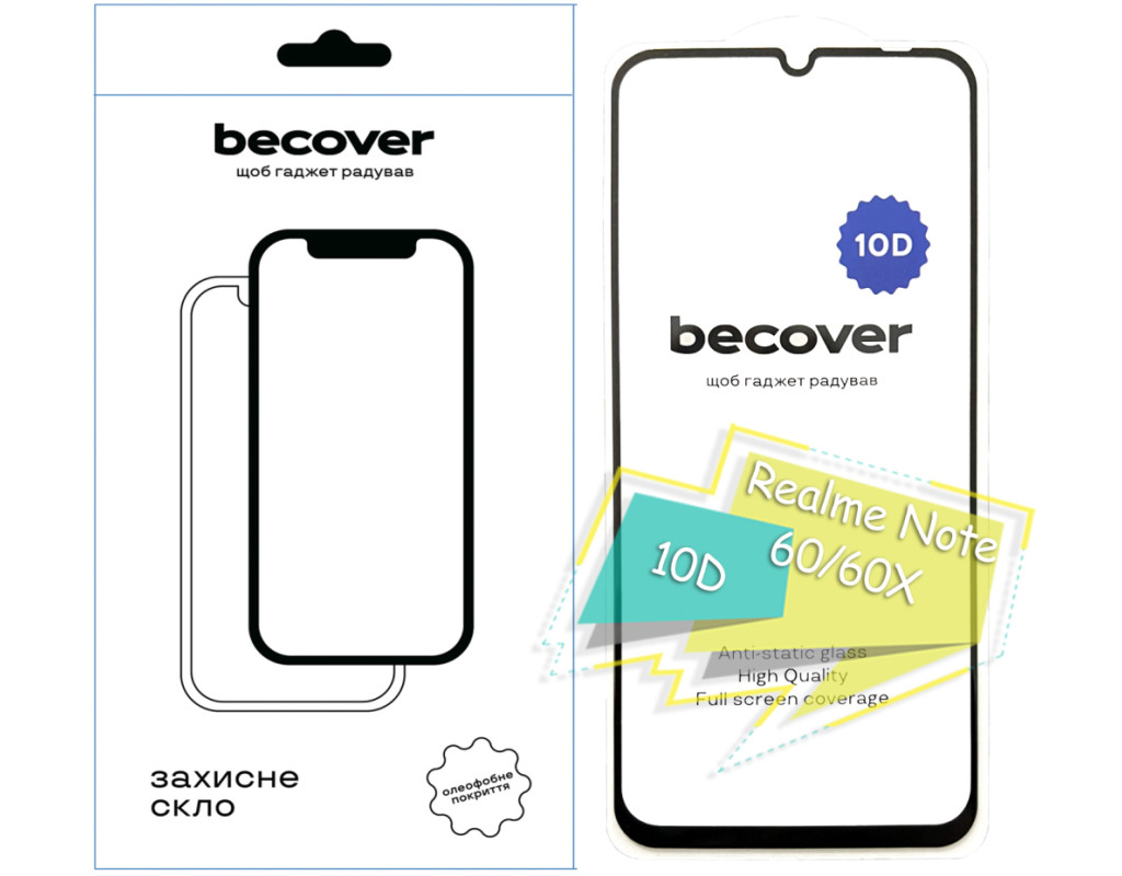 Призначення - для телефону, Вид покриття - глянсове, Сумісність з моделями - Realme Note 60, Кількість в упаковці - 1 шт