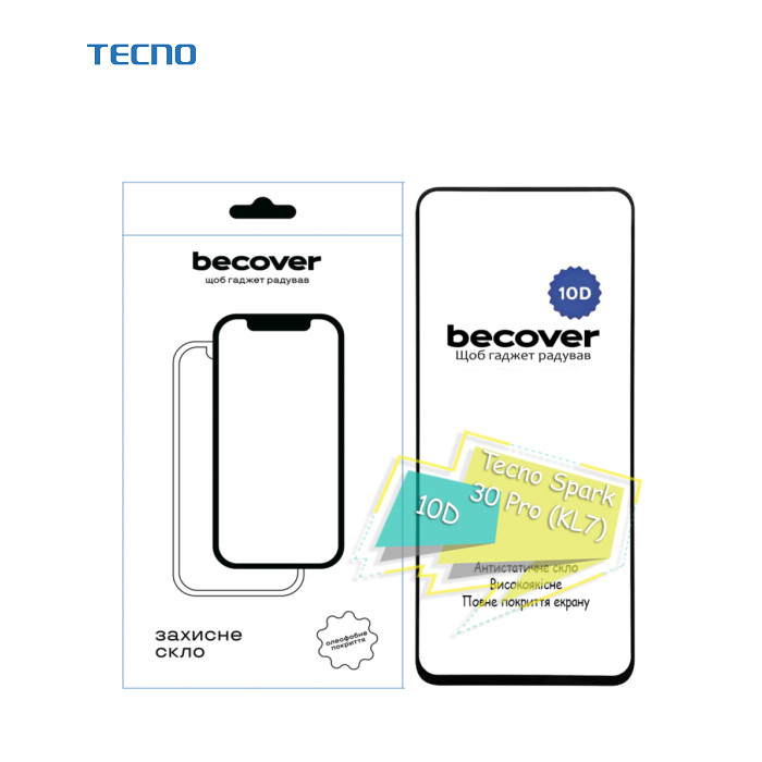 Призначення - для телефону, Вид покриття - глянсове, Сумісність з моделями - Tecno Spark 30 Pro, Кількість в упаковці - 1 шт