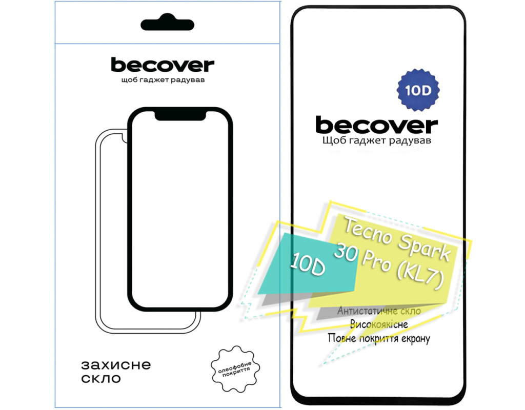 Скло захисне BeCover Tecno Spark 30 Pro (KL7) 10D Black (713166)