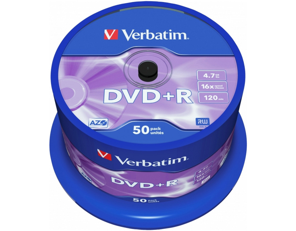 | DVD+R Verbatim 4.7Gb 16X CakeBox 50 шт (43550): - Диск для одноразового запису - Місткість: 4.7 ГБ - Швидкість запису : 16х - Упаковка: 50 дисків в тубі |