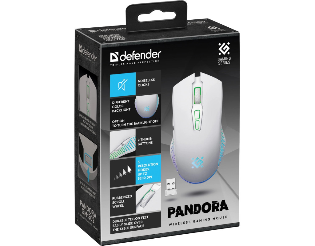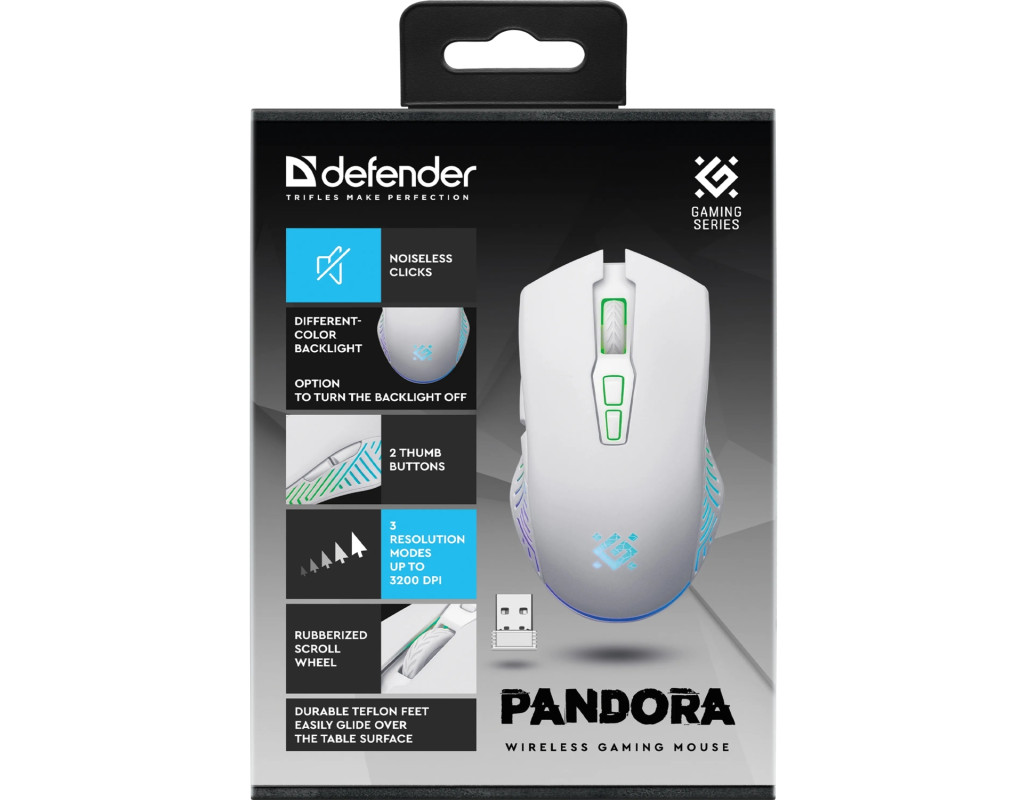 Мишка Defender Pandora GM-502, бездротова, ігрова, 7кн., 3200 dpi., 500 mAh, біла