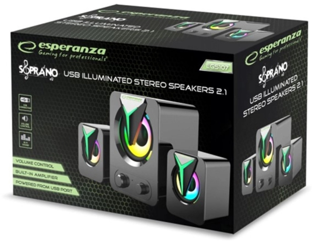 | Акустична система Esperanza Speakers EGS107 RainbowSoprano (EGS107) — це вражаюче поєднання сучасного дизайну та високоякісного звуку, що робить її ідеальним вибором для будь-якого простору. Створена у популярному форматі 2.1, дана система пропонує багатий і насичений звук, що розширює межі вашого акустичного досвіду. Завдяки унікальному LED підсвічуванню RAINBOW, кожна хвилина з цією системою перетворюється на емоційний театр, що зачаровує своєю атмосферністю. Головною особливістю Esperanza EGS107 є здатність відтворювати чисте і насичене звучання, що ідеально підходить для занурення в світ музики, фільмів чи ігор. Завдяки сабвуферу потужністю 5 Вт і двоканальним колонкам по 5 Вт кожна, система гарантує відмінну глибину басів. Це дозволяє вам насолоджуватися потужним та якісним звуком навіть при максимальному рівні гучності, без спотворень і шуму. Завдяки дротовому підключенню, ці колонки легко інтегруються з будь-яким пристроєм, який має вихід mini Jack 3.5 мм або AUX. Це робить їх надзвичайно зручними у використанні, особливо коли потрібно швидко і просто підключити їх до улюбленого пристрою. Система живиться від USB, що додає їй портативності та універсальності, адже ви можете включити її будь-де — вдома, в офісі чи під час подорожі. Корпус колонок виготовлено зі стильного пластику, який не лише приємний на вигляд, але й захищає внутрішні компоненти від впливу електростатики та електромагнітних хвиль. Це забезпечує не тільки естетично привабливий дизайн, але й надійну довговічність. Доповнюючи всі ці характеристки, вмонтований регулятор гучності на корпусі робить налаштування звуку інтуїтивно зрозумілим процесом. Просто оберіть потрібний рівень гучності і насолоджуйтеся ідеально збалансованим звуком, що адаптується до ваших потреб лише одним дотиком. Esperanza Speakers EGS107 RainbowSoprano — це стильний та функціональний вибір, що стане вашим найкращим акустичним партнером у світі розваг. Незалежно від того, чи ви меломан, геймер чи просто любите якісний звук у повсякденному житті, ця система створена, щоб вразити вас своєю якістю та зручністю, відповідати вашим найвибагливішим потребам і стати невід'ємною частиною вашого оточення. |