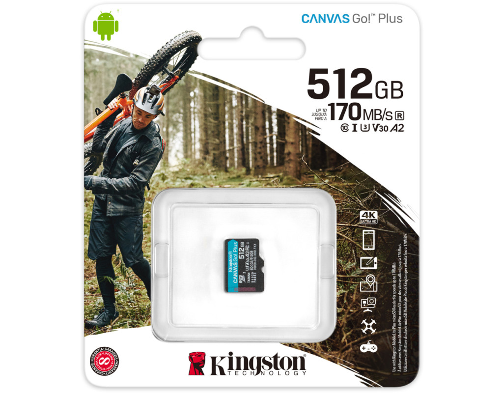 | Відкрийте світ нових можливостей зі швидкою та надійною картою пам'яті Kingston 512GB microSDXC Canvas Go Plus G4. Завдяки новітній технології UHS-I U3 та V30, ця карта забезпечує вражаючу швидкість читання до 200 МБ/с і запису до 160 МБ/с, що робить її ідеальним вибором для мобільних геймерів, власників дронів та екшн-камер. Вона гарантує безперебійний запис у форматі 4K Ultra-HD, навіть у найдинамічніших умовах, надаючи бездоганну якість зображення та плавність відтворення. Об'єм пам'яті на 512 ГБ дозволяє зберігати безліч файлів, фотографій та відео, забезпечуючи уникнення браку простору під час ваших активних пригод. Клас A2 для застосунків оптимізує продуктивність смартфонів і планшетів, дозволяючи швидке завантаження ігор та програм без затримок, забезпечуючи максимальне занурення в ігровий процес. Карта пам'яті постачається з додатковим SD-адаптером, що значно розширює спектр сумісних пристроїв. Відомо, що Kingston — це синонім якості та надійності, і Canvas Go Plus не є винятком. Вона стане незамінним аксесуаром для тих, хто цінує продуктивність і комфорт під час подорожей або зйомок. |