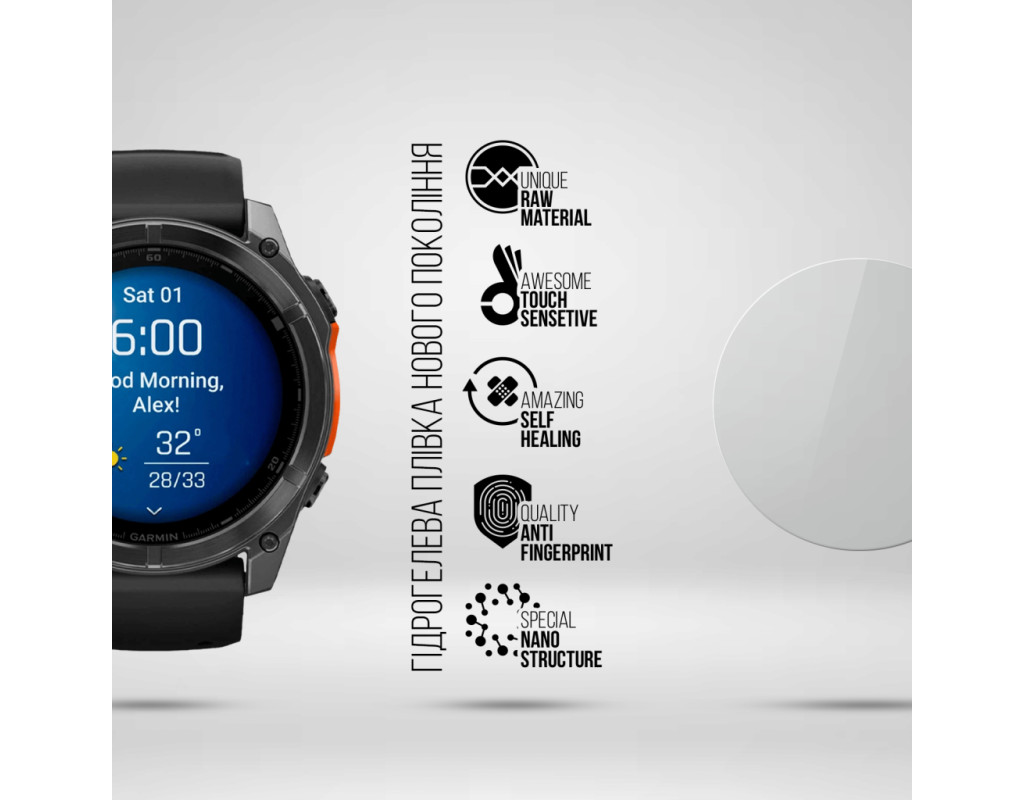 Призначення - для смарт годинника, Вид покриття - глянсове, гідрогелева, Сумісність з моделями - Garmin Fenix 8 51mm, Кількість в упаковці - 6 шт