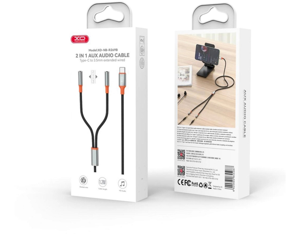 Перехідник USB-C to 2x3.5mm F 1.0m NB-R269B black XO (NB-R269B.black)