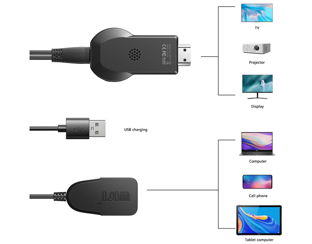 Передача зображення та відео через Wi-Fi Дозволяє передавати зображення та відео з мобільного пристрою, комп’ютера або планшета на телевізор, проектор чи інший дисплей. Якісне зображення Підтримує 1080P/60Hz, а також сумісний із 720P та 480P. Просте підключення Підключити адаптер до телевізора або проектора через HDMI та USB для живлення. Смартфон під’єднай до Wi-Fi, та транслюй зображення на великий екран. Якісний всередині Кабель з 99% безкисневої міді та екранований спеціальною фольгою. Надійний зовні Зносостійка ПВХ оболонка та протектори біля конекторів витримують більше 10 000 згинань. Універсальне використання Ідеальний для презентацій, перегляду фільмів та ігор на великому екрані. Широка сумісність iOS (iPad і iPhone з версіями 8–12), MacBook (OS 10.8 і вище) Android (Android 4.2 і вище), включаючи технологію Miracast для віддзеркалення екрану. |