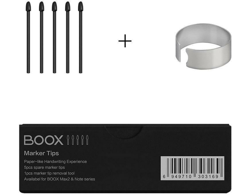 Onyx Boox серії Nova Onyx Boox серії Note Onyx Boox Note Air 2, 2+ Onyx Boox Max 2, Max 3, Max Lumi, Tab Максимальний комфорт Більш м’який і менш слизький наконечник для максимально комфортного використання. Коли ви пишете з ним на своїх пристроях BOOX, ви отримаєте достатнє тертя, щоб відчути, що ви пишете на папері. Точність і контроль Якість цих наконечників забезпечить точність і повний контроль ваших дій. В упаковці В упаковці 5 змінних стержнів і пристосування для комфортного видалення старого пера. |