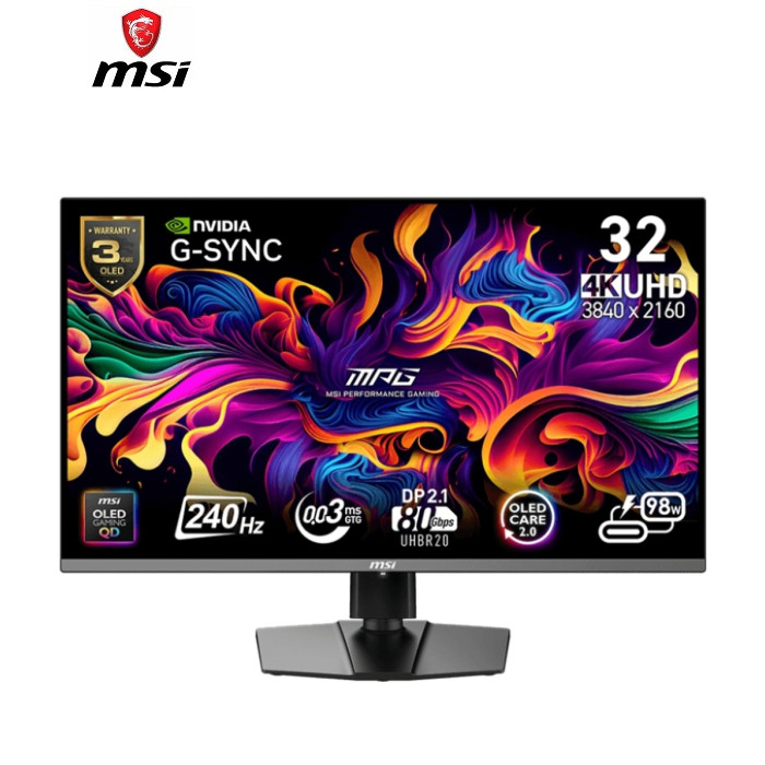 Уся краса ваших перемог - на екрані ігрового монітора MPG 322URX QD-OLED Він оснащується вигнутою екранною панеллю (UHD) QD-OLED нового покоління з роздільною здатністю 3840x2160 (UHD), частотою оновлення 240Гц і низьким часом відгуку - 0.03мс GtG. Чіткість під час показу динамічного контенту і глибокий чорний колір сертифіковані за стандартами VESA: ClearMR 13000 і DisplayHDR True Black 400. Технологія OLED Care 2.0 знижує ризик «вигоряння» екрана. Для власників ігрових консолей монітор пропонує інтерфейс HDMI 2.1 з пропускною спроможністю 48Гбіт/с, Підтримка 4K 120Гц, VRR, ALLM і DP 2.1a забезпечує високу швидкість 80 Гбіт/с для ігор і професійних дисплеїв. Це дає змогу використовувати нові пристрої без зниження продуктивності. У геймерській серії MPG (MSI Performance Gaming) стильний дизайн поєднується з високою продуктивністю. Ці пристрої не тільки забезпечать ігровий комфорт, а й дадуть змогу вам проявити всю вашу індивідуальність. Дизайн, орієнтований на майбутнє DisplayPort 2.1a (UHBR20) підвищує стабільність, якість і сумісність із майбутніми пристроями, збільшуючи пропускну спроможність одного каналу з 8.1 Гбіт/с до 20 Гбіт/с і досягаючи загальної швидкості 80 Гбіт/с - це в 2.5 раза більше, ніж у DisplayPort 1.4a. DisplayPort 2.1a (UHBR20) відповідає вимогам високих частот оновлення за високої роздільної здатності, безпосередньо підтримуючи 4K за 240 Гц без DSC, а також даючи змогу використовувати функції DSR і DLDSR. Готовність до G-SYNC Compatible Підтримка G-SYNC Compatible забезпечує плавний ігровий процес без розривів зображення, синхронізуючи частоту оновлення монітора з графічним процесором. Це знижує розриви екрана, затримки та посмикування, забезпечуючи більш плавне відображення, особливо в динамічних іграх. Крім того, технологія повністю сумісна з майбутнім обладнанням, даючи змогу гравцям використовувати весь потенціал передових графічних процесорів. Це гарантує безшовну сумісність і оптимальну якість зображення, розкриваючи можливості нових технологій, таких як трасування променів і змінна частота оновлення. Оновлення прошивки MPG 322URX QD-OLED може оновлювати прошивку через роз'єм DP, що просто і зручно у використанні. Це дає змогу самостійно оновлювати прошивку в будь-який час, коли MSI випускає нову версію. Це гарантує, що екран завжди перебуває в найкращому оптимізованому стані. Сертифікація Windows Dynamic Lighting Монітор отримав сертифікацію Windows Dynamic Lighting, що дає змогу користувачам контролювати та синхронізувати світлові ефекти на під'єднаних пристроях. Користувачі можуть налаштувати яскравість, ефекти та синхронізацію, щоб усе працювало гармонійно на сумісних пристроях, забезпечуючи плавну інтеграцію з Windows Dynamic Lighting. Гарантія впевненості OLED-монітори MSI створені для довговічного та вражаючого зображення. Індивідуальний дизайн радіатора та передова графенова плівка покращують розсіювання тепла, а спеціальне програмне забезпечення знижує ризик вигоряння з часом. MPG 322URX QD-OLED