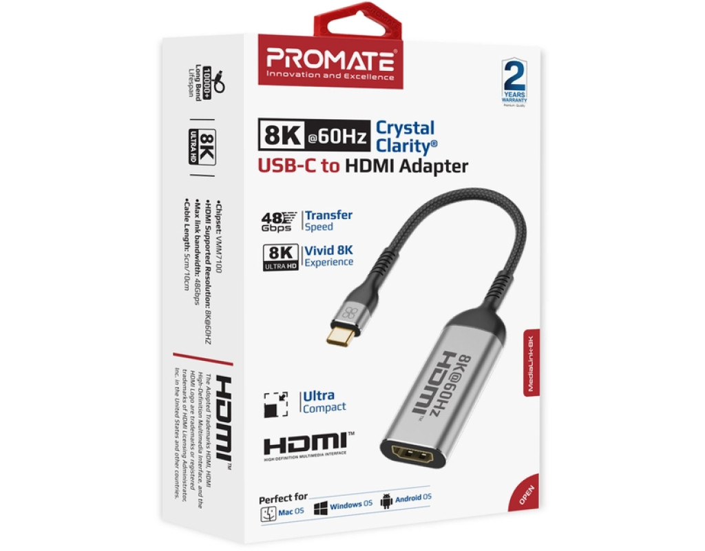 Адаптер USB-C to HDMI M 2.0m Promate (medialink-8k.grey)