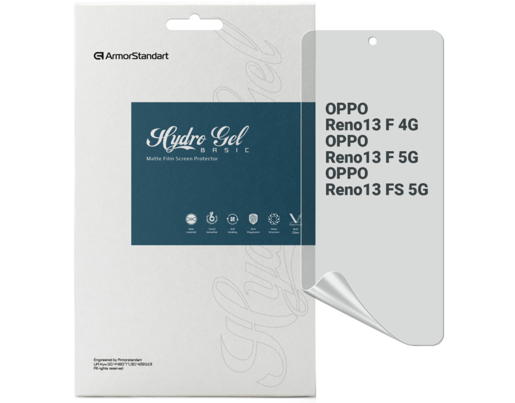 Призначення - для телефону, Вид покриття - матове, гідрогелева, Сумісність з моделями - OPPO Reno13 F 4G, OPPO Reno13 F 5G, OPPO Reno13 FS 5G, Кількість в упаковці - 1 шт