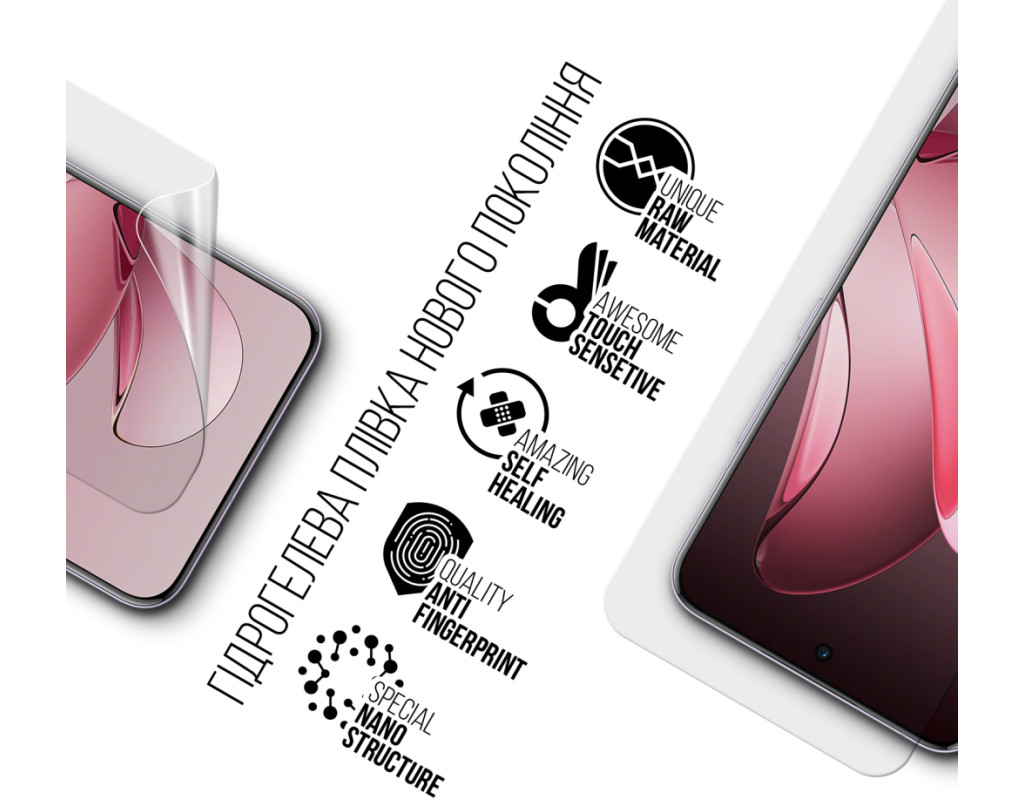 Призначення - для телефону, Вид покриття - глянсове, гідрогелева, Сумісність з моделями - OPPO Reno13 Pro 5G, Кількість в упаковці - 1 шт