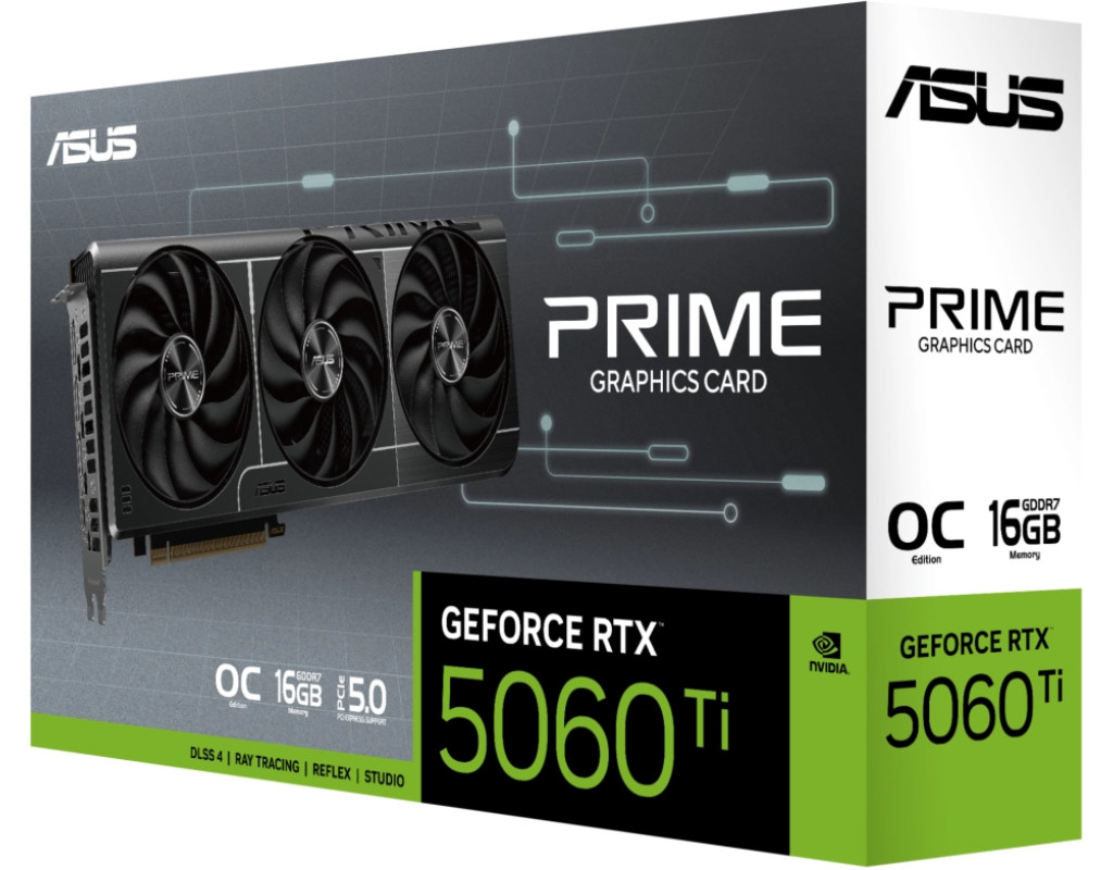 Готова до потужності Відчуйте первозданну продуктивність з Prime GeForce RTX 5060 Ti – відеокартою рівня ентузіастів, сумісною з компактними корпусами (SFF), з конструкцією шириною 2.5 слота та потрійною системою охолодження, що забезпечує потужний повітряний потік та чудове охлачення.