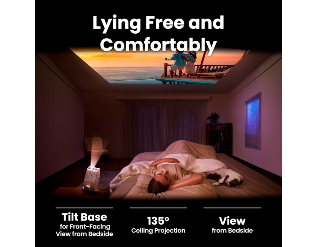 Вільно налаштовуйте кути для перегляду Гнучка конструкція основи проєктора GV50, схожа на вбудований штатив, спеціально розроблена для проєціювання на стелю з боку ліжка, що дає змогу проєціювати зображення під будь-яким потрібним кутом, відпочиваючи в комфорті свого ліжка. Нахил для ідеального перегляду Нахиліть регульовану основу проєктора GV50 для проєціювання з тумбочки біля ліжка, щоб забезпечити оптимальне візуальне позиціювання, не турбуючись про нестабільність, а також звільнити місце на ліжку. Вільно сидіти або лежати Легко повертайте корпус проєктора з можливістю вертикального регулювання на 135° безпосередньо зі стійкої основи, плавно переходячи від настінного проєціювання до стельового. Проєціювання з будь-якого боку Ефективно використовуйте простір спальні, розташувавши проєктор GV50 по обидва боки ліжка. Просто поверніть пристрій на 180 градусів і переверніть екран* для оптимального перегляду. Розслабтеся в будь-якому положенні Завдяки регулюванню кута нахилу екрана на 360 градусів GV50 дозволяє знайти ідеальне положення для комфортного перегляду. Легко змінюйте розмір екрана Завдяки інтуїтивно зрозумілій конструкції важеля масштабування GV50 зміна розміру екрана відбувається без зайвих зусиль. Насолоджуйтесь безпроблемним доступом для оптимального перегляду, без жодних перешкод на стелі. Налаштуйте екран так, як вам зручно За допомогою пульта дистанційного керування ви можете переміщати екран по вертикалі та горизонталі, не рухаючи тілом, і без зусиль знаходити оптимальний кут перегляду. Спокійно спіть з таймером Установіть таймер сну для спокійного перегляду, поки ви не заснете. Режим Eye Care Спеціальний режим зображення Night Shift (Нічний режим) автоматично налаштовує кольори дисплея, щоб зменшити навантаження на очі, допомагаючи вам природно заснути. Захоплюючий звук перед сном Попрощайтеся з блокуванням звуку сабвуфера, спричиненим нахиленими вгору проєкторами, завдяки режиму звуку стельового кінотеатру GV50. Наші ретельно розроблені налаштування звуку забезпечують оптимальну якість звуку незалежно від того, лежите ви чи сидите. Абсолютно нові розваги Google TV пропонує персоналізовані рекомендації та безперешкодний доступ до потокових сервісів, таких як Netflix, Prime Video, YouTube, Disney+ та інших, а також Google Assistant для додаткової зручності. Додаток SmartRemote для проєктора BenQ Ніколи не ґавте момент, навіть якщо пульт дистанційного керування поза зоною досяжності. Керуйте проєктором безпосередньо з телефону за допомогою додатка SmartRemote для проєкторів BenQ. Відпочинок з атмосферною проєкцією Перетворіть будь-яку стіну або стелю на мальовничий відпочинок за допомогою нашого додатка. Пориньте в захопливі пейзажі, заспокійливу атмосферу або безмежні простори космосу, і все це — у супроводі заспокійливих звуків. Помічник Google тепер у додатку Ексклюзивно доступний у нашому додатку, помічник Google допоможе знайти щось цікаве для перегляду за допомогою персоналізованих рекомендацій. Гаряча клавіша для стримінгу Переходьте до улюблених розваг одним дотиком, насолоджуючись плавними переходами між додатками для стримінгу. Керування за допомогою комбінацій клавіш Легко регулюйте яскравість, автокорекцію клавіш або встановлюйте таймер сну одним дотиком прямо з додатка. Яскравіші, блискучіші візуальні ефекти Насолоджуйтеся яск