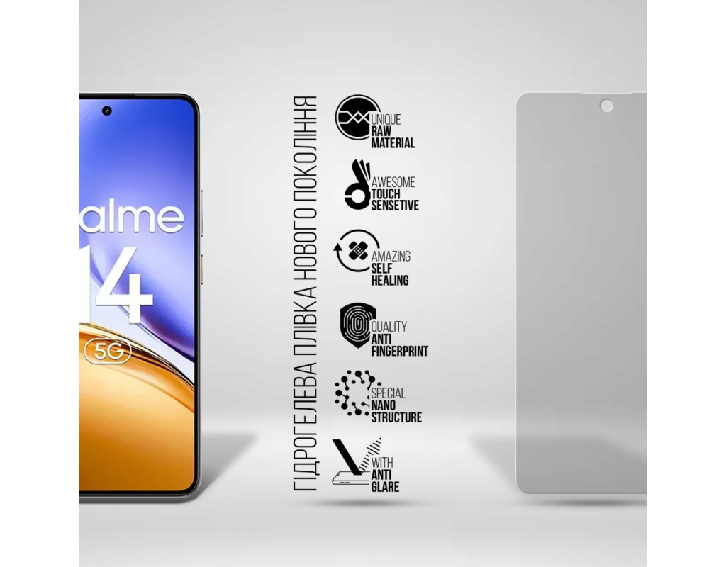 Призначення - для телефону, Вид покриття - матове, гідрогелева, Сумісність з моделями - Realme 14 5G, Кількість в упаковці - 1 шт