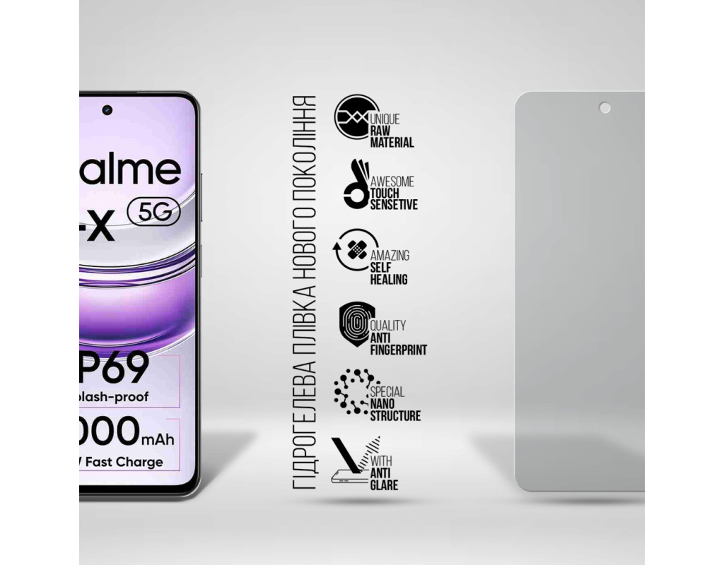 Призначення - для телефону, Вид покриття - матове, гідрогелева, Сумісність з моделями - Realme 14x 5G, Кількість в упаковці - 1 шт