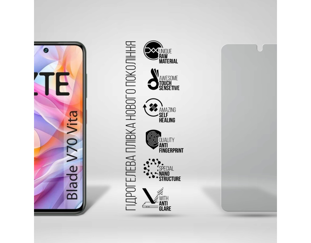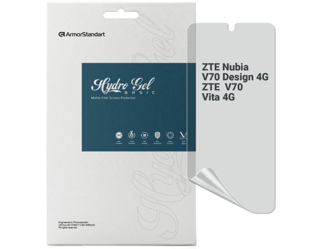 Призначення - для телефону, Вид покриття - матове, гідрогелева, Сумісність з моделями - ZTE Nubia V70 Design 4G, ZTE Nubia V70 Vita 4G, Кількість в упаковці - 1 шт