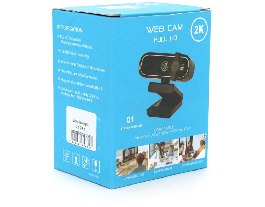 Вебкамера з гарнітурою Q1, 720p, автофокус, пласт. корпус, Black / Silver, Q100