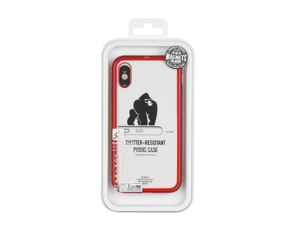 сумісність з моделями - Apple iPhone XS, Тип чохла для телефону - накладка, Призначення - модельний, Матеріал - полікарбонат, скло, Колір - червоний, прозорий