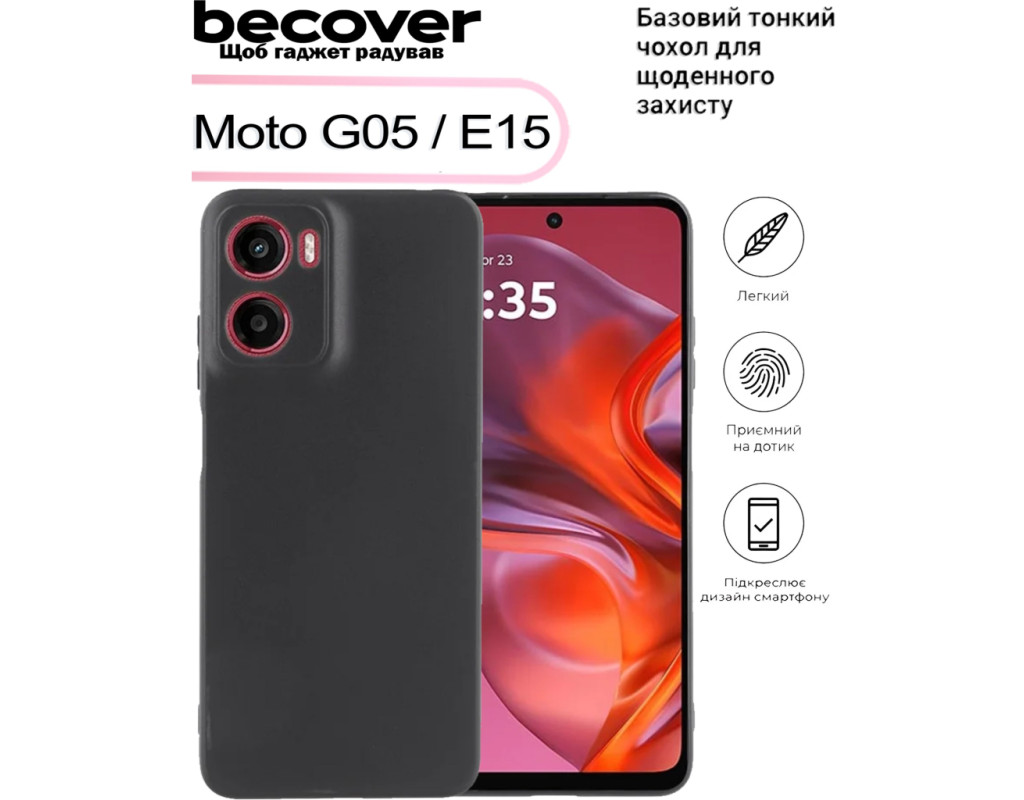 сумісність з моделями - Motorola G05, Motorola E15, Тип чохла для телефону - накладка, Призначення - модельний, Матеріал - силікон, Колір - чорний