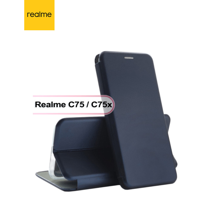 сумісність з моделями - Realme C75, Realme C75x, Тип чохла для телефону - книжка, Призначення - модельний, Матеріал - штучна шкіра, Колір - темно-синій