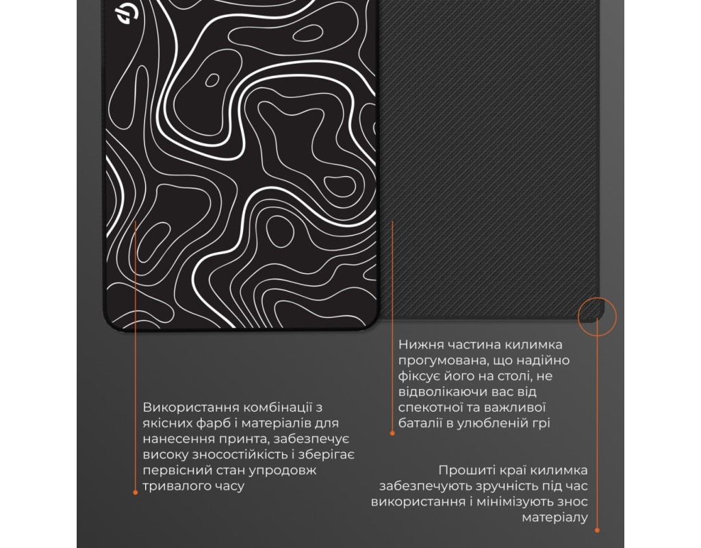 Прорезинена основа забезпечує надійну фіксацію на будь-якій поверхні. Килимок не ковзає, не зсувається навіть під час найбільш напружених моментів гри, даруючи користувачу повний контроль над кожним рухом. Це особливо важливо для кіберспортсменів і тих, хто грає на високих рівнях складності, де важлива кожна мілісекунда.