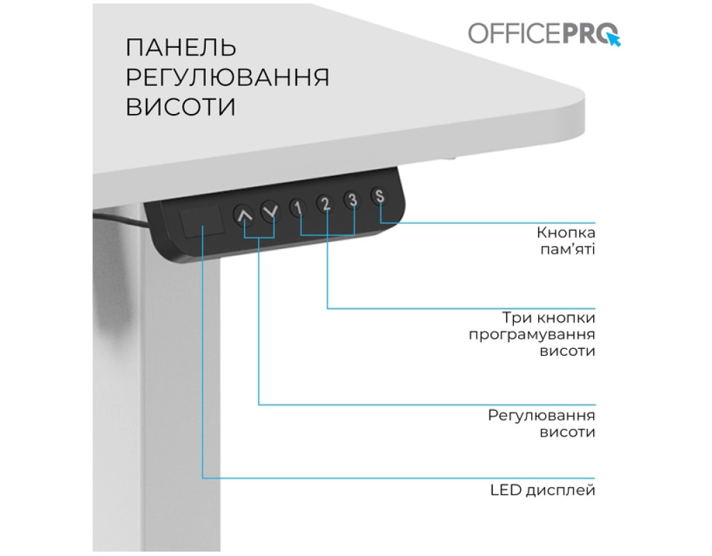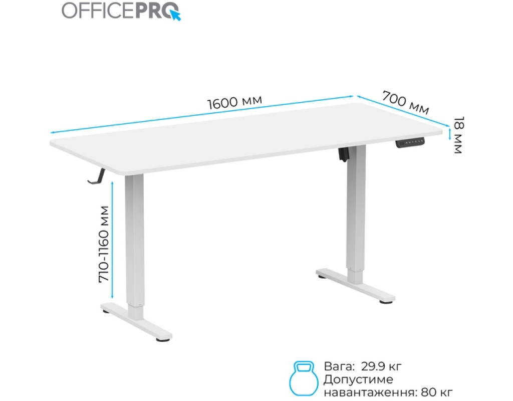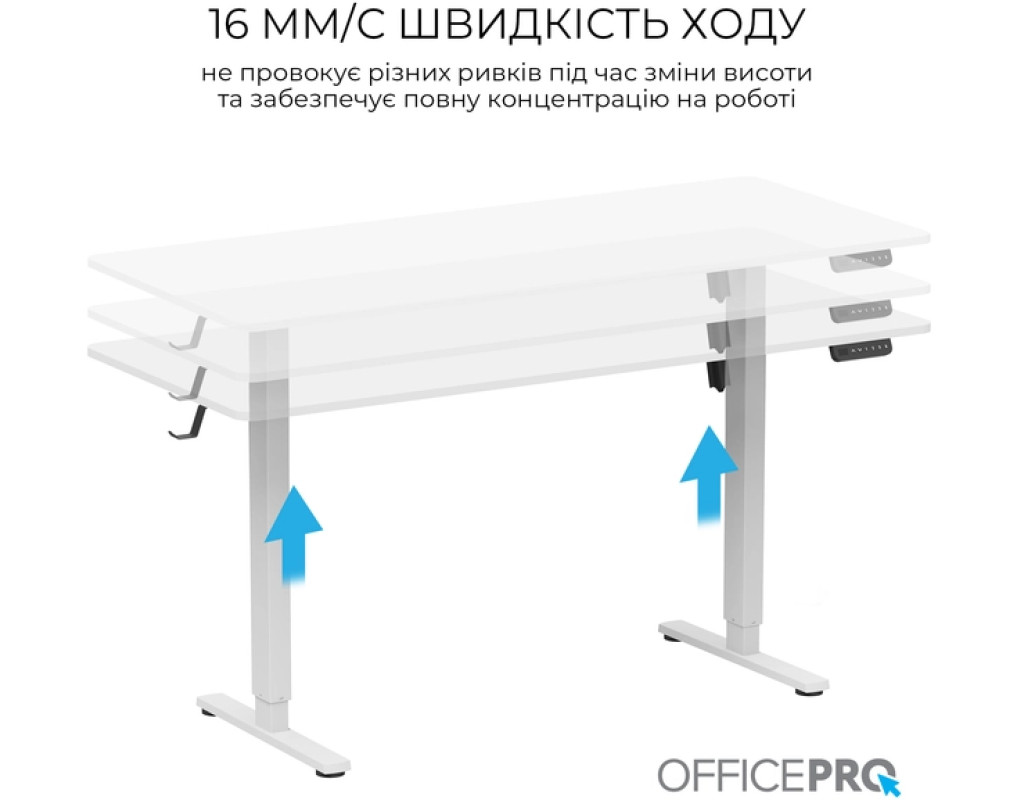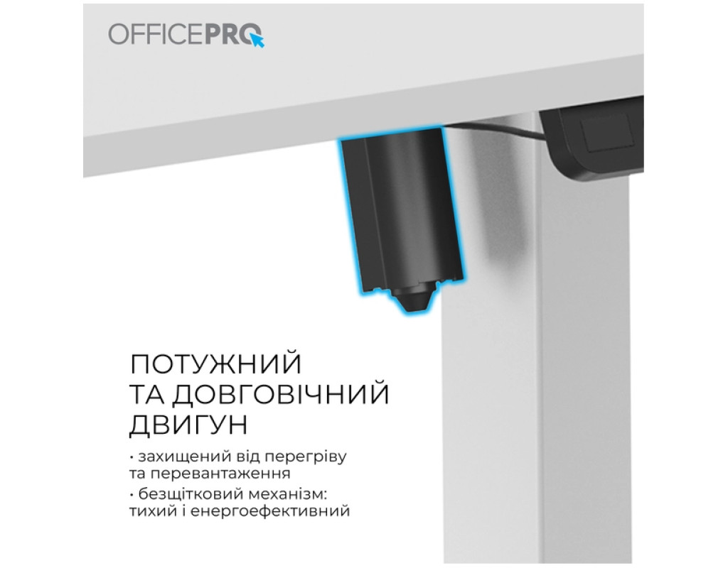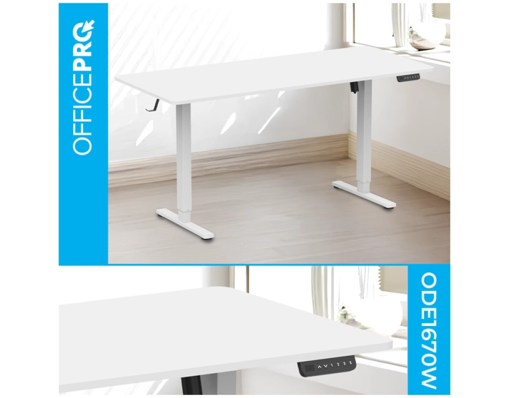 Стіл із електрорегулюванням висоти Officepro серії ODE1670 розроблений для бездоганної інтеграції в будь-який домашній інтер'єр або корпоративне середовище, пропонує ідеальне поєднання функціональності, довговічності та доступності. Завдяки потужному двигуну стіл забезпечує плавне, тихе та надійне регулювання висоти одним натисканням кнопки.