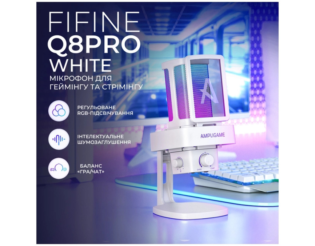 Fifine Q8PRO — це конденсаторний мікрофон із чітким, природним звучанням, створений для геймерів, стримерів, подкастерів і всіх, хто регулярно спілкується онлайн. Він забезпечує високу якість передачі голосу завдяки широкому частотному діапазону та високій чутливості, що дозволяє записувати звук без спотворень і сторонніх шумів. Одна з головних переваг моделі — функція активного шумозаглушення, яка ефективно усуває фонові шуми й дозволяє вашому голосу звучати чітко навіть у шумному середовищі. Це особливо важливо для прямих ефірів, важливих онлайн-дзвінків чи ігрових сесій. Мікрофон оснащений USB Type-C підключенням для швидкого старту без потреби у встановленні драйверів. Має вбудований 3.5 мм аудіовихід для навушників, що дає змогу здійснювати моніторинг звуку в реальному часі без затримок. Завдяки фізичним регуляторам на корпусі можна легко керувати чутливістю мікрофона, гучністю навушників та — що особливо зручно для геймерів — налаштовувати баланс звуку між грою та голосовим чатом. Сенсорна кнопка вимкнення (mute) з LED-підсвіткою дозволяє миттєво вимкнути мікрофон, не створюючи зайвого шуму під час ефіру. Fifine Q8PRO сумісний з Windows, macOS, а також з ігровими консолями PS4/PS5. Це універсальне рішення для тих, хто хоче звучати професійно, комфортно керувати своїм звуком та мати повний контроль у будь-якому форматі роботи — від гри до онлайн-лекції. |
