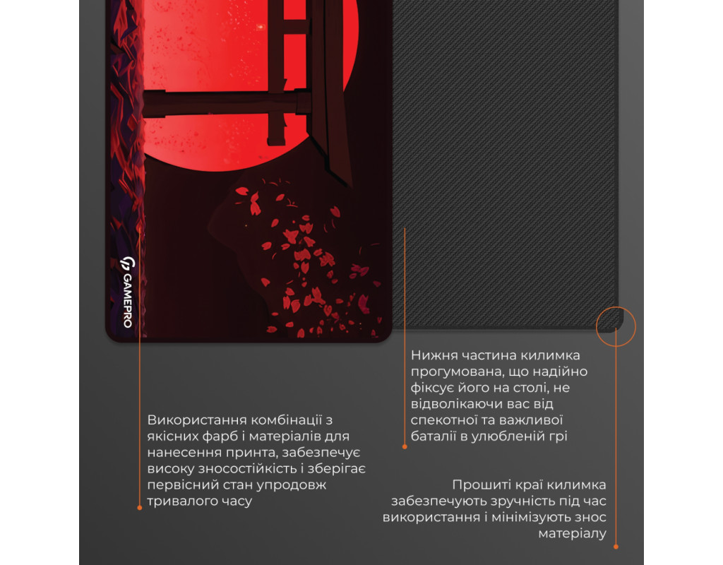 З ігровим килимком від GamePro кожен рух миші буде точним, а кожна дія — максимально ефективною. Це не просто аксесуар, а інструмент, що дозволяє повністю розкрити потенціал улюбленої гри.